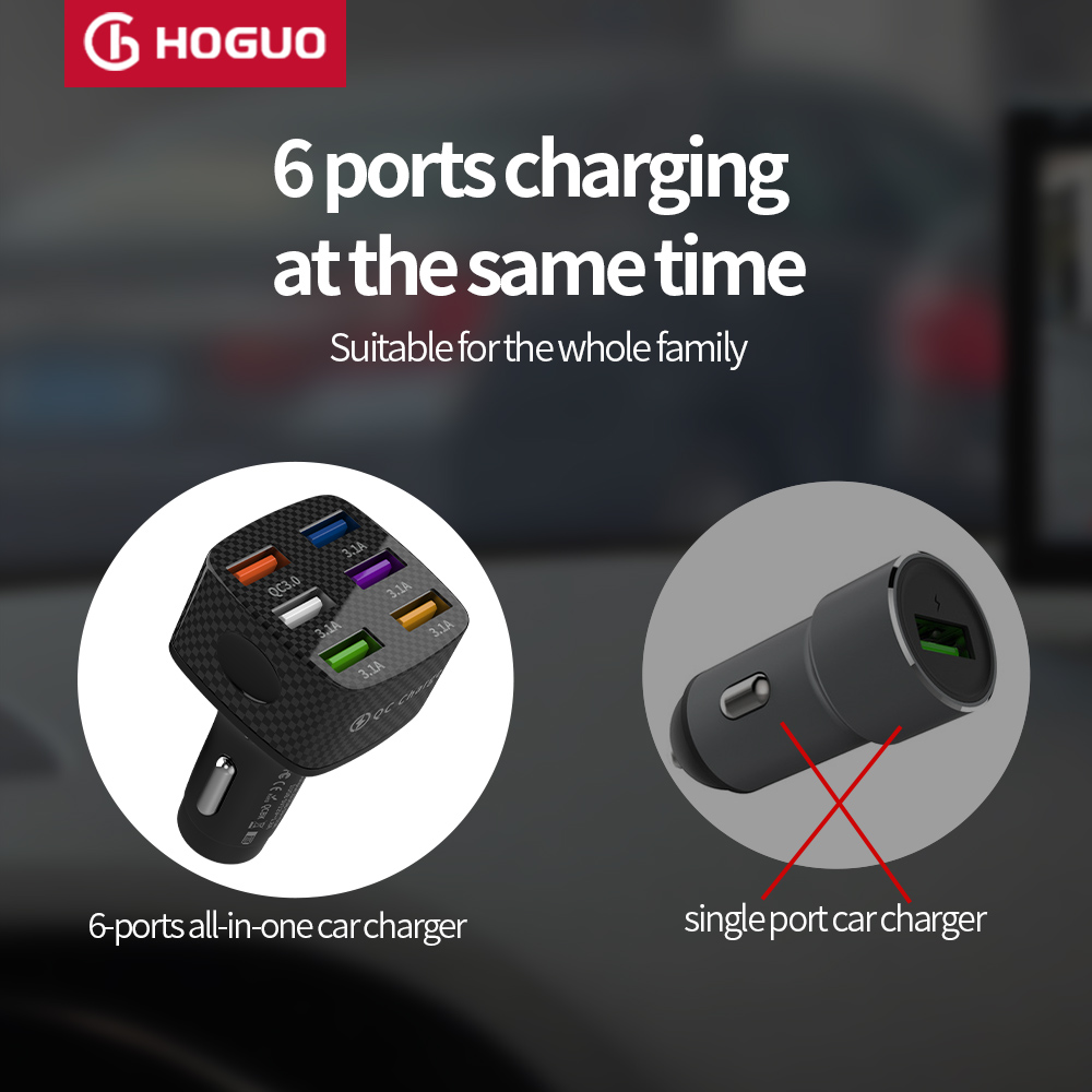 Hoguo QC 3,0 USB 6 портов автомобильное зарядное устройство Быстрая Зарядка адаптер для мобильного телефона для Xiaomi Huawei Samsung Iphone