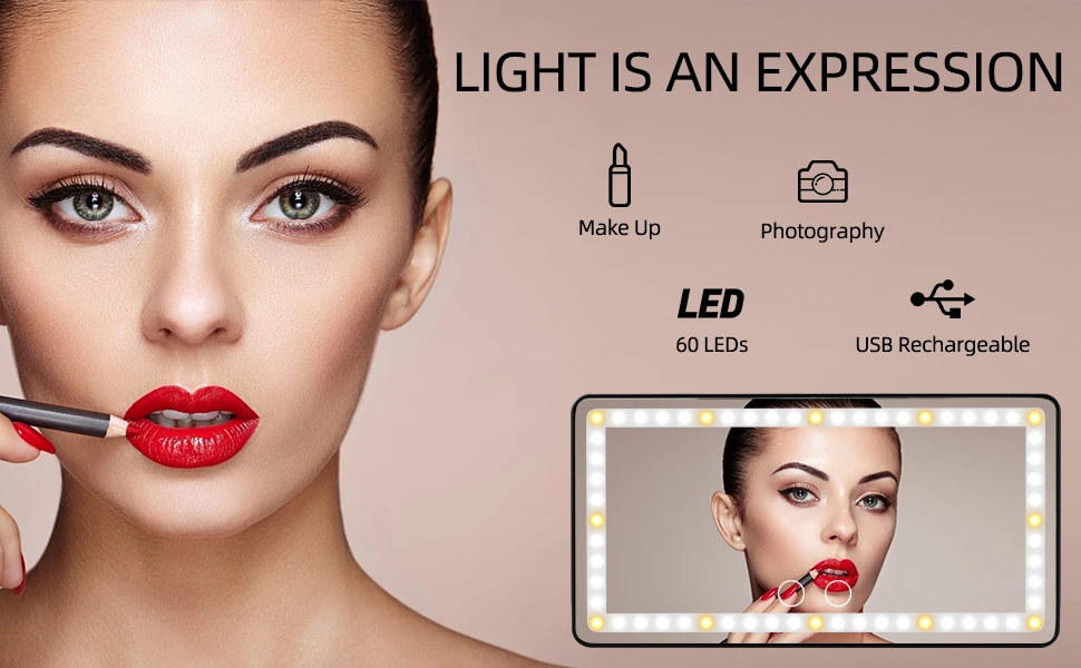 2. Перезаряжаемый USB: Встроенный литиевый аккумулятор емкостью 1700 мА · ч, который может заряжаться автомобилем, розеткой, компьютером, мобильным питанием, может свободно использовать туалетное зеркало в любом месте и в любое время. Он может длиться 8 часов, если 100% яркость всегда в режиме.