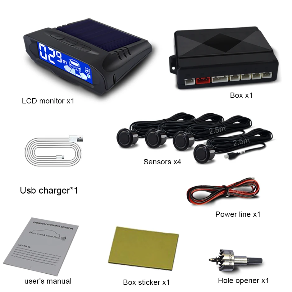 Автомобильные беспроводные датчики парковки Комплект Запасной радар парктроник Авто Солнечная зарядка ЖК-монитор детектор помощь Поддержка обратного хода