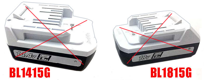 Они не подходят для литиевых батарей Makita 14,4 В 18 В BL14XXg серии BL18XXg, как показано на рисунке ниже: