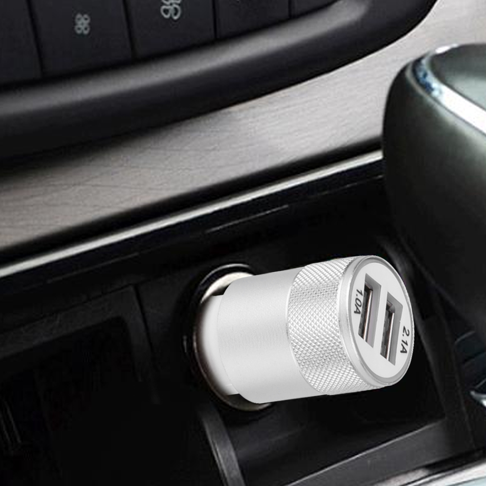 2. Автомобильные зарядные устройства 1A 2 порта Быстрая зарядка Автомобильный планшет Зарядка мобильного телефона Алюминиевый двойной адаптер USB-разъема
