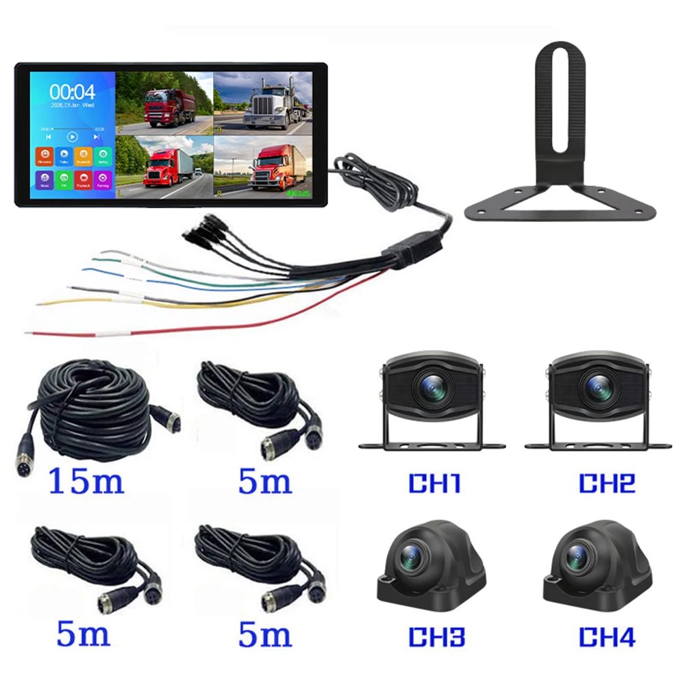 10,36-дюймовый сенсорный экран IPS Автомобильный монитор 4-канальная камера наблюдения AHD 1080P Цветные ночные автомобильные кулачковые системы Парковочный видеорегистратор