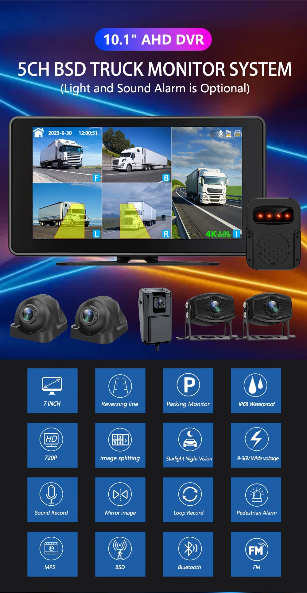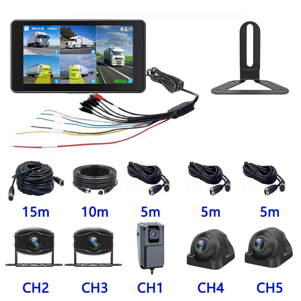 10,1-дюймовый 5-канальный автомобильный монитор AHD с сенсорным экраном для автомобилей/Автобусов/грузовиков 7200P камеры видеонаблюдения Цветной регистратор парковки ночного видения