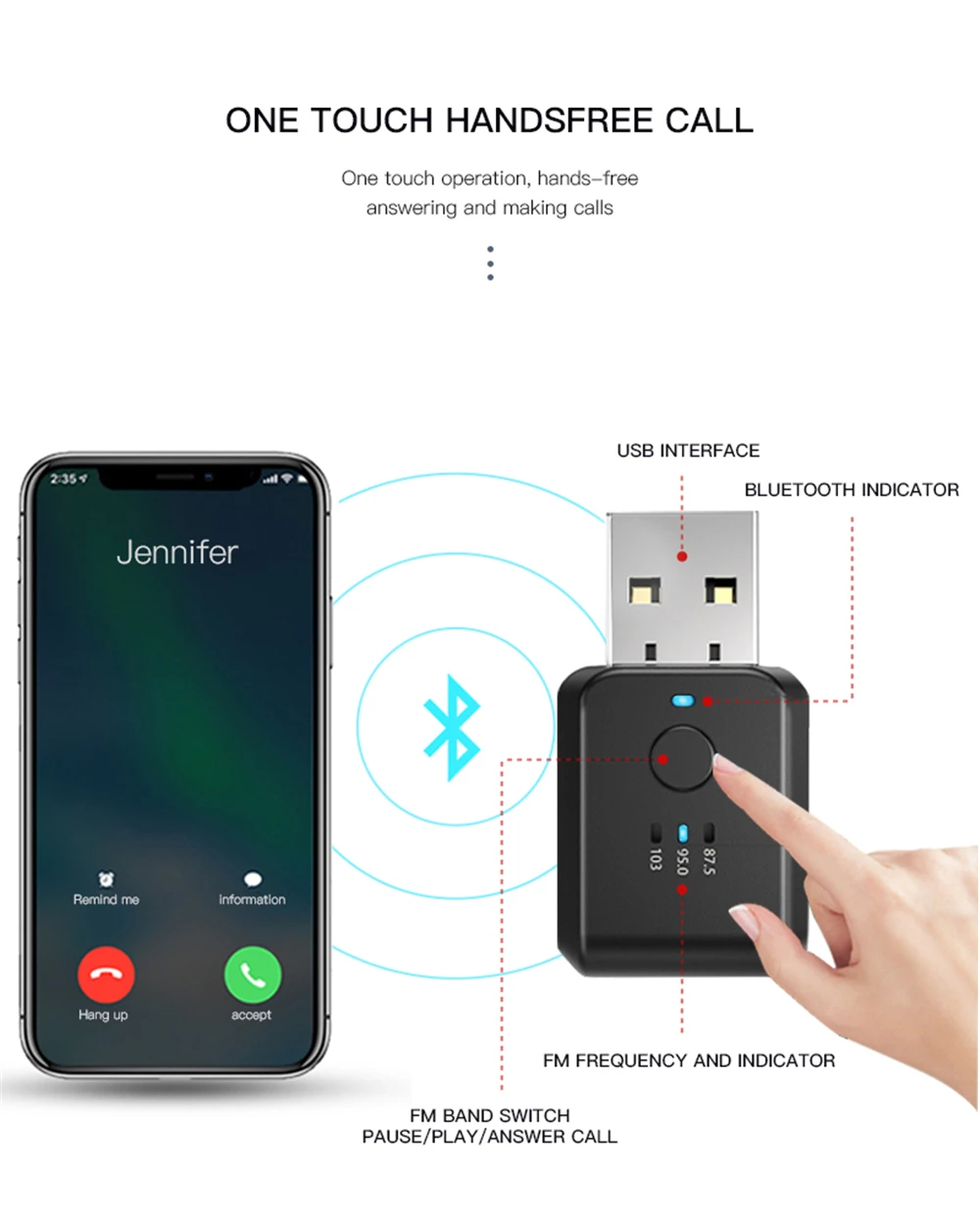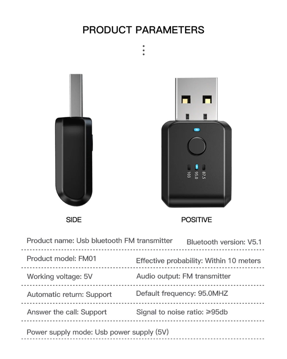 Этот продукт в основном используется в автомобильных сценариях с использованием новейшей технологии Bluetooth 5,1 и зрелой технологии частотной модуляции FM, чтобы позволить автомобильным фанатам легко наслаждаться беспроводной музыкой в автомобиле.