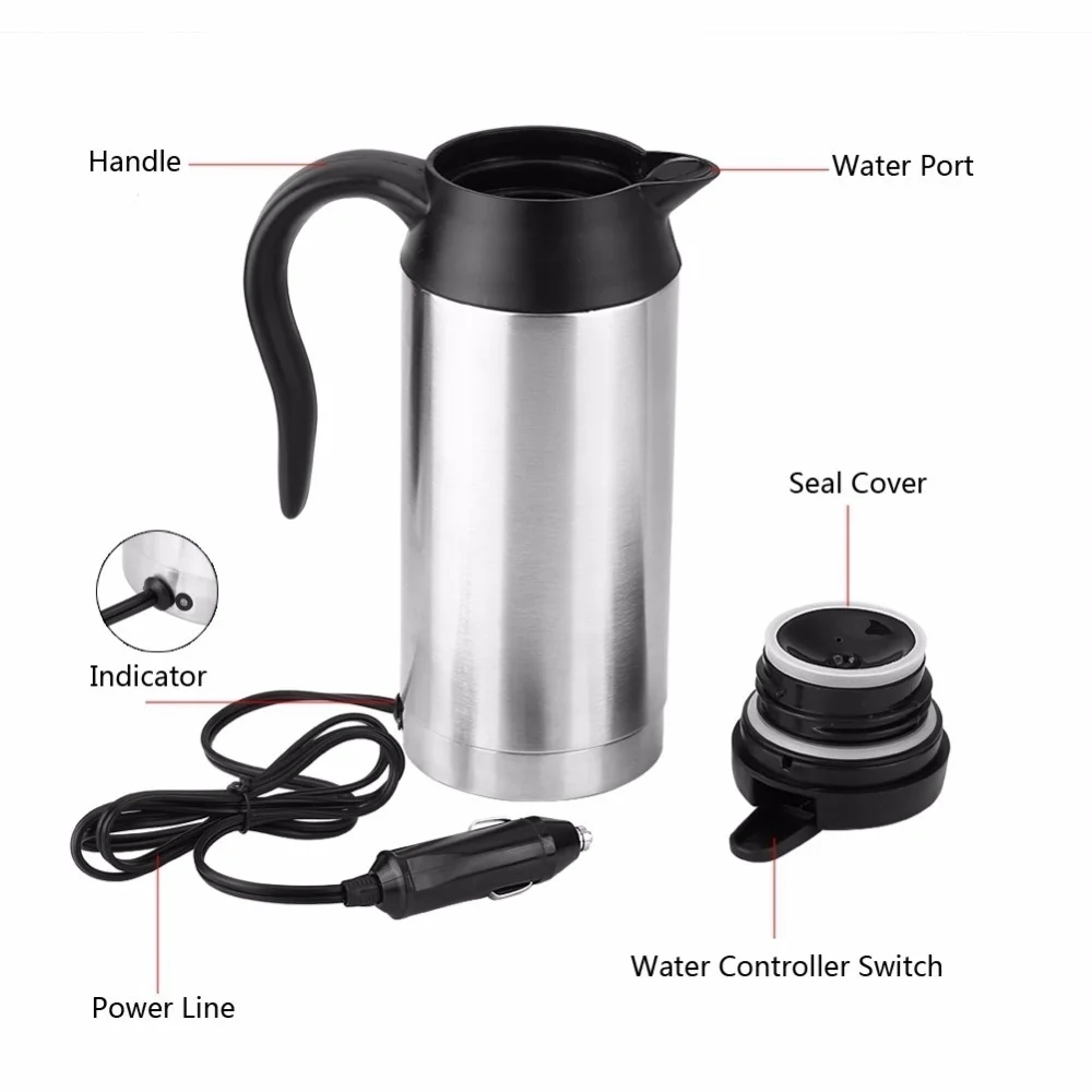 Автомобильный чайник, 12 В, электрический чайник, портативный термос, бойлер для воды, мини электрический чайник для воды из нержавеющей стали для путешествий