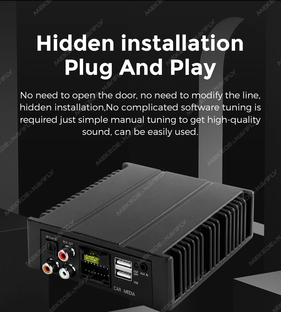 3. Проверьте, оснащен ли ваш автомобиль оригинальной системой усилителя? Если ваш автомобиль изготовлен на заводе, мы не рекомендуем вам покупать этот продукт; Если ваш автомобиль является заводским усилителем и вы хотите использовать этот DSP, вам нужно снять усилитель заводского производства, и вам нужны хорошие навыки установки и знание проводки.