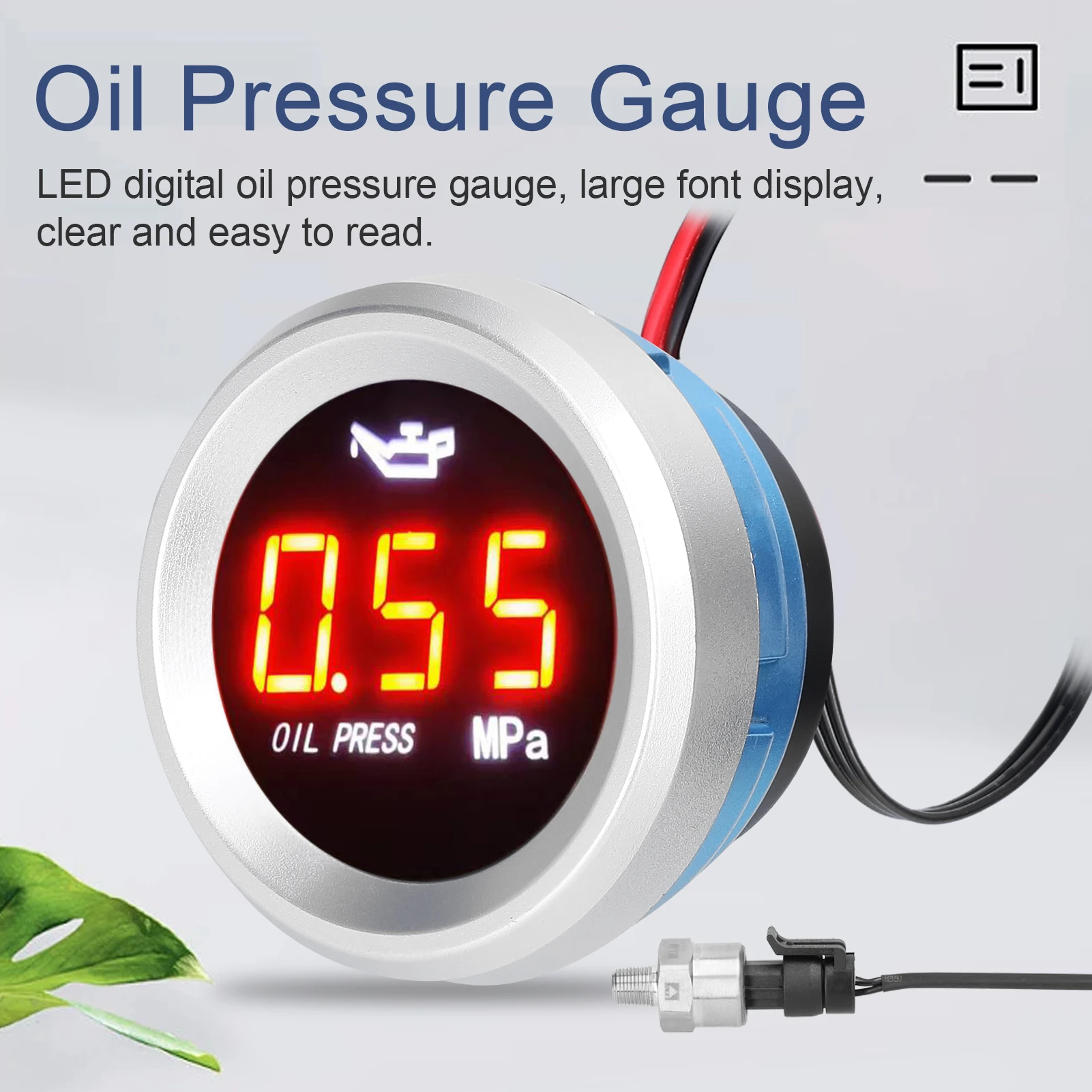 Светодиодный цифровой манометр масла, дисплей с крупным шрифтом, четкий и удобный для чтения.