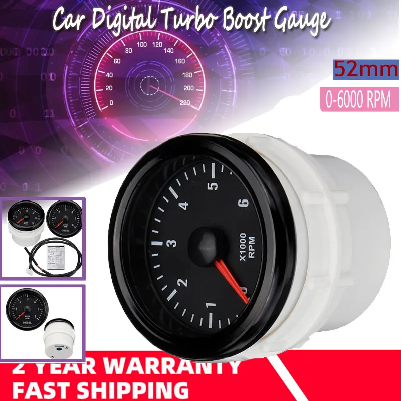 Автомобильный цифровой УФ-фильтр 52 мм с 0-6000 об/мин Электрический Тахометр Turbo Boost об/мин Датчик Вольтметр постоянного тока 12V универсальный для дизельного двигателя
