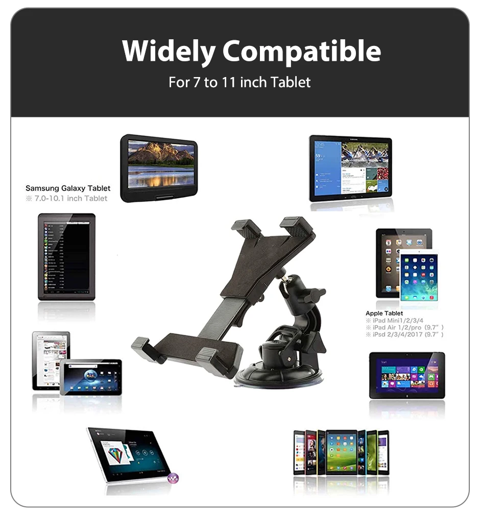 1. Выдвижной кронштейн с несколькими направлениями для iPad 7-11 дюймов планшетный ПК с зажимом на лобовом стекле автомобиля.