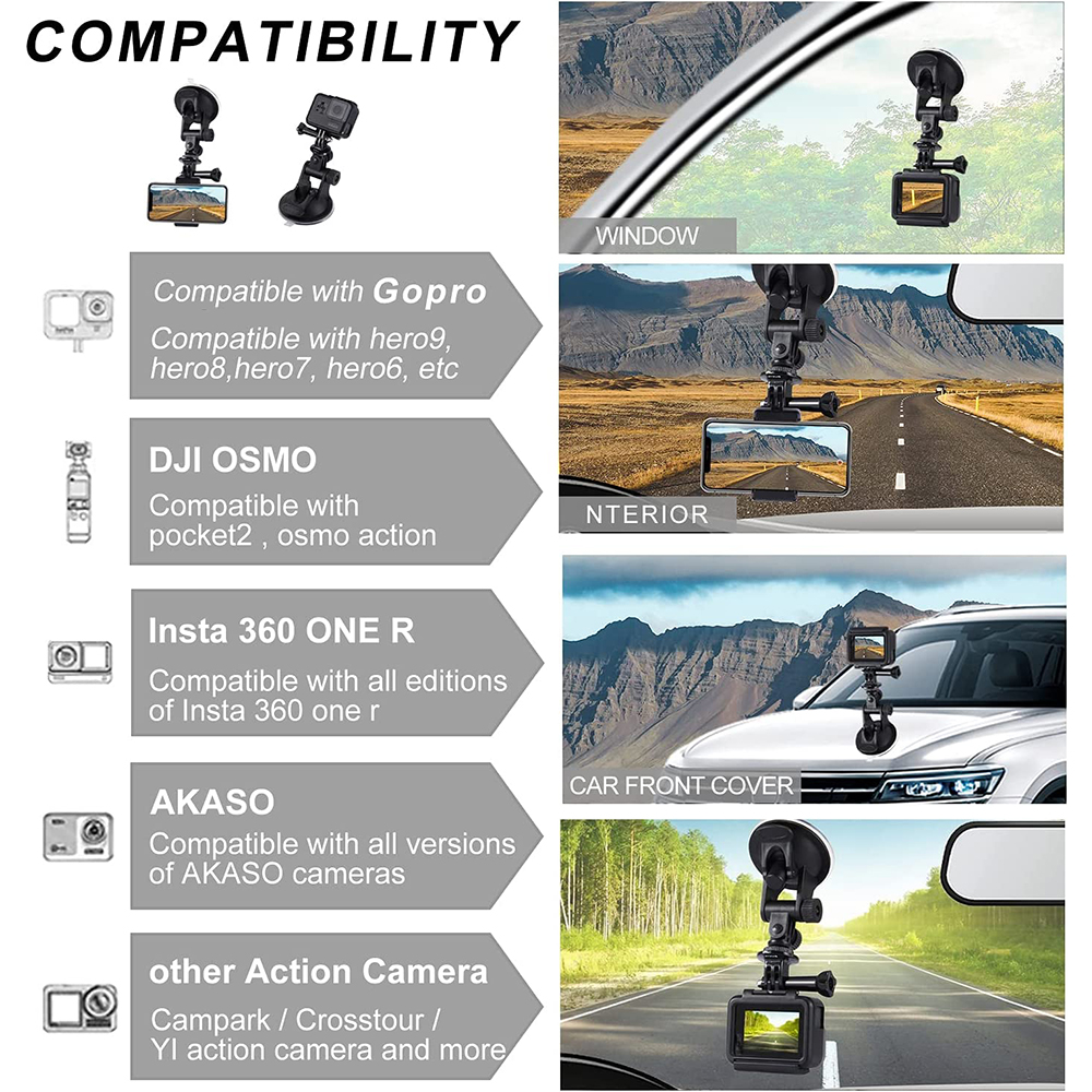 【Широко использова】крепление для всасывания спортивной камеры имеет отличную адсорбционную способность на любой гладкой поверхности, прикрепляет корпус камеры к стеклянной поверхности, поверхности плитки, столешнице и окрашенной поверхности. Идеально подходит для различных случаев, таких как автомобили, корабли, моторные лодки и т. Д., вы можете наслаждаться POV съемки.