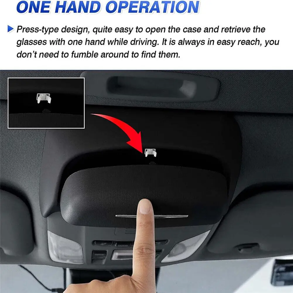 Управление одной рукой-конструкция нажимного типа, довольно легко открыть футляр и извлечь очки одной рукой во время вождения. Он всегда находится в легкой досягаемости, вам не нужно возиться, чтобы найти их.