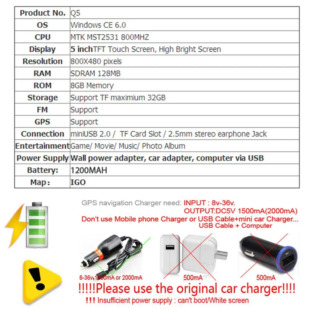 Автомобильный GPS-навигатор, 5,0 дюйма, 8 Гб ПЗУ, сенсорный экран, GPS-навигация, FM-передатчик, автомобильный GPS-трекер, устройство ОЗУ 128 Мб