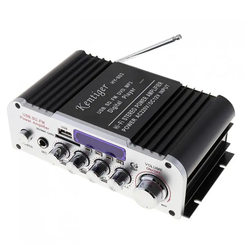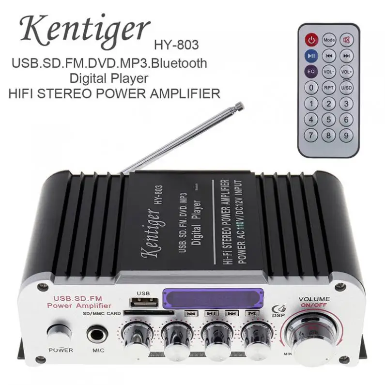 Автомобильный Hi-Fi mp3-усилитель Kentiger HY-803, 2 канала, 12 В, автомобильный аудио стерео усилитель мощности, FM-радио, плеер