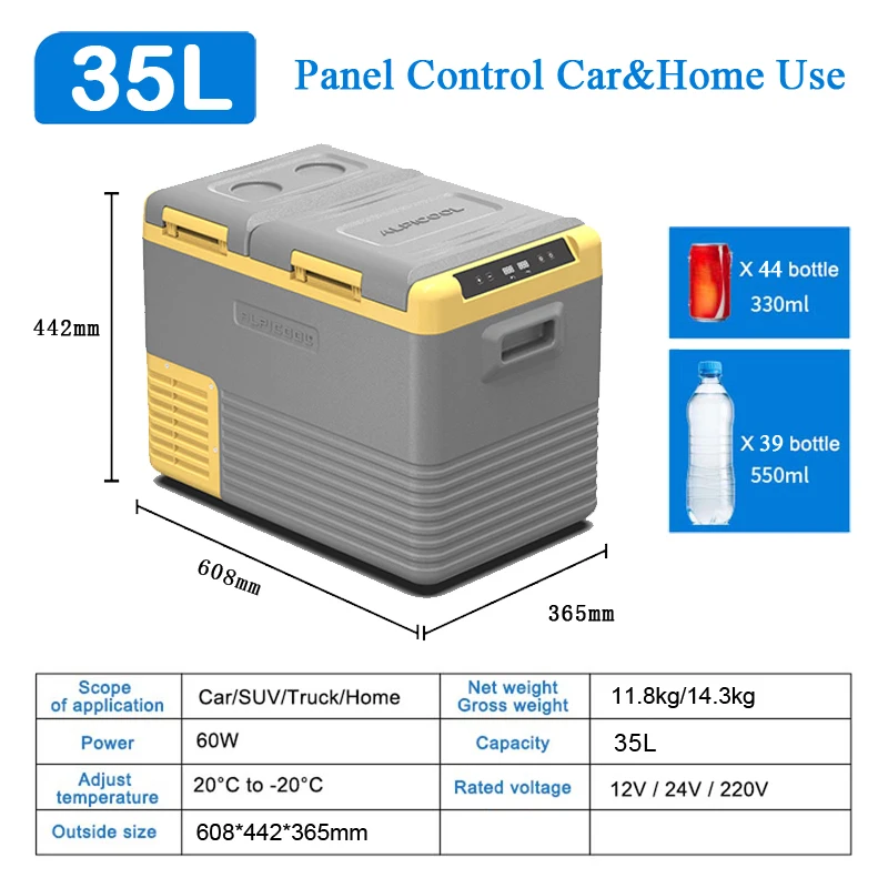 Автомобильный холодильник Alpicool 27L 35L 43L, портативный фотокомпрессор, охлаждающая коробка, двухзонный, для кемпинга, пикника, фургона