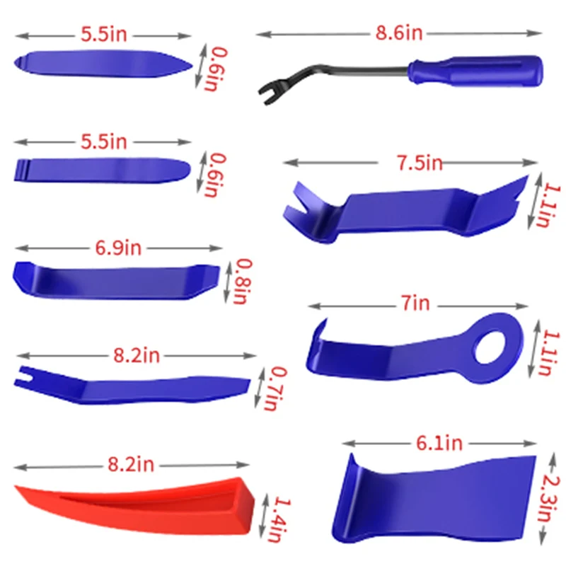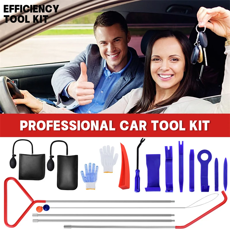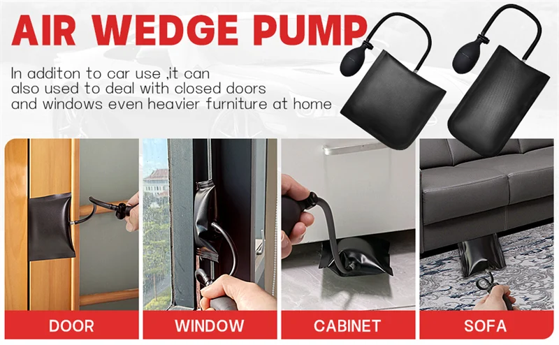 【Клинья без повреждений 】 --- Этот набор инструментов поставляется с клином без повреждений разного размера, легко выполнять работу и предотвращать повреждение дверей и окон, вы можете использовать их с подушкой безопасности для лучшего эффекта.