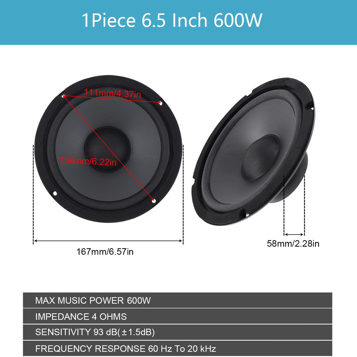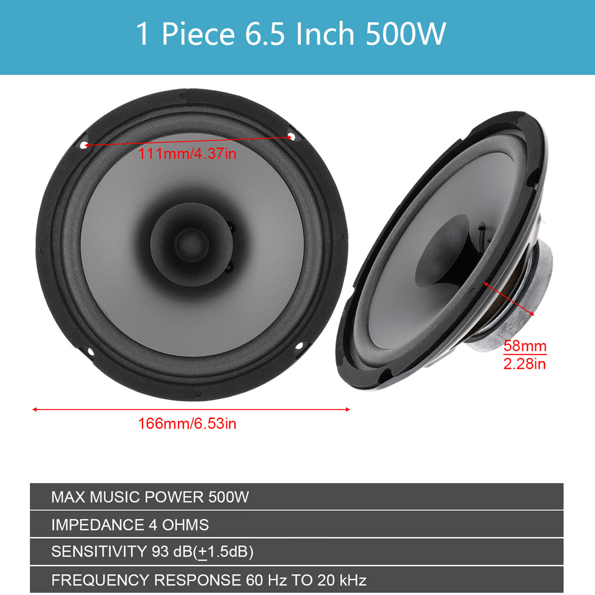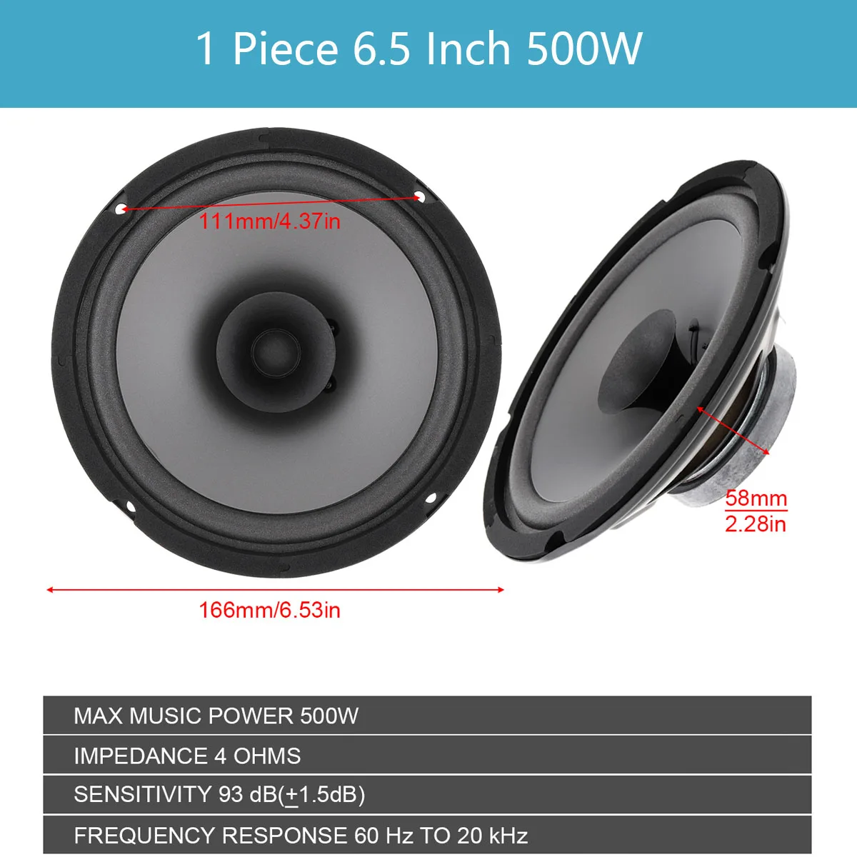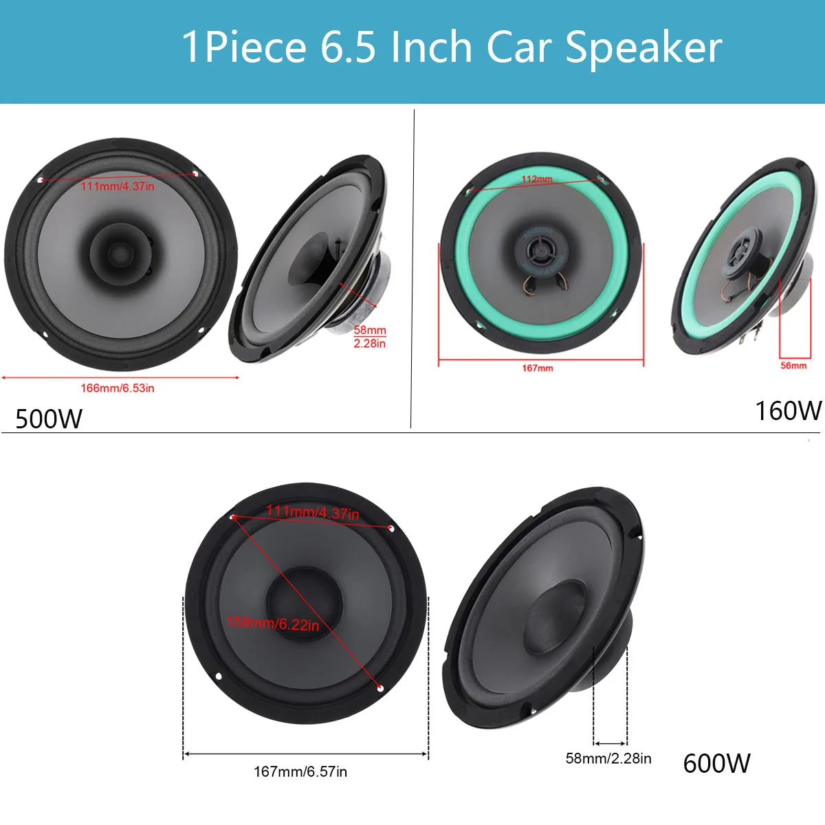 Автомобильный коаксиальный динамик, 1 шт., 6,5 дюйма, 160 Вт/500 Вт/600 Вт, автомобильная аудиосистема на дверь автомобиля, музыкальный стерео динамик с полным диапазоном частот, громкоговоритель
