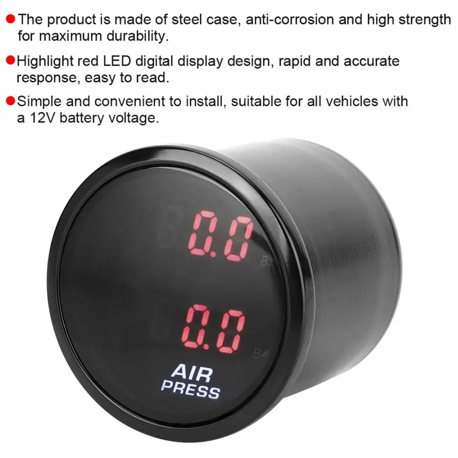 Автомобильный манометр с турбонаддувом, 2 дюйма, 12 В, светодиодный красный цифровой дисплей, датчик давления воздуха, высокое качество, автомобильные аксессуары, новинка