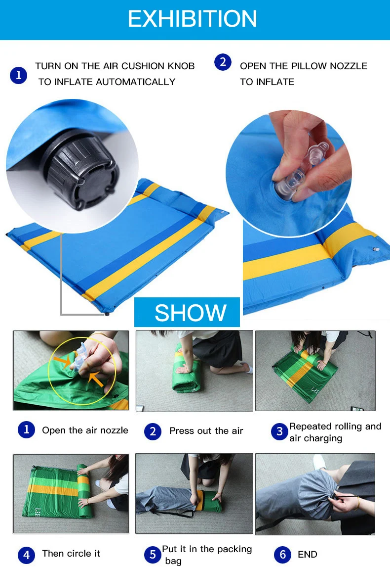 Особенности продукта: Автоматическая инфляция Толщина 5 см Может быть вместе Товары входят в комплект: Автоматический воздушный матрас для одного человека * 1 Воздушный мешок для хранения матраса * 1 Ремонт грантов * 1