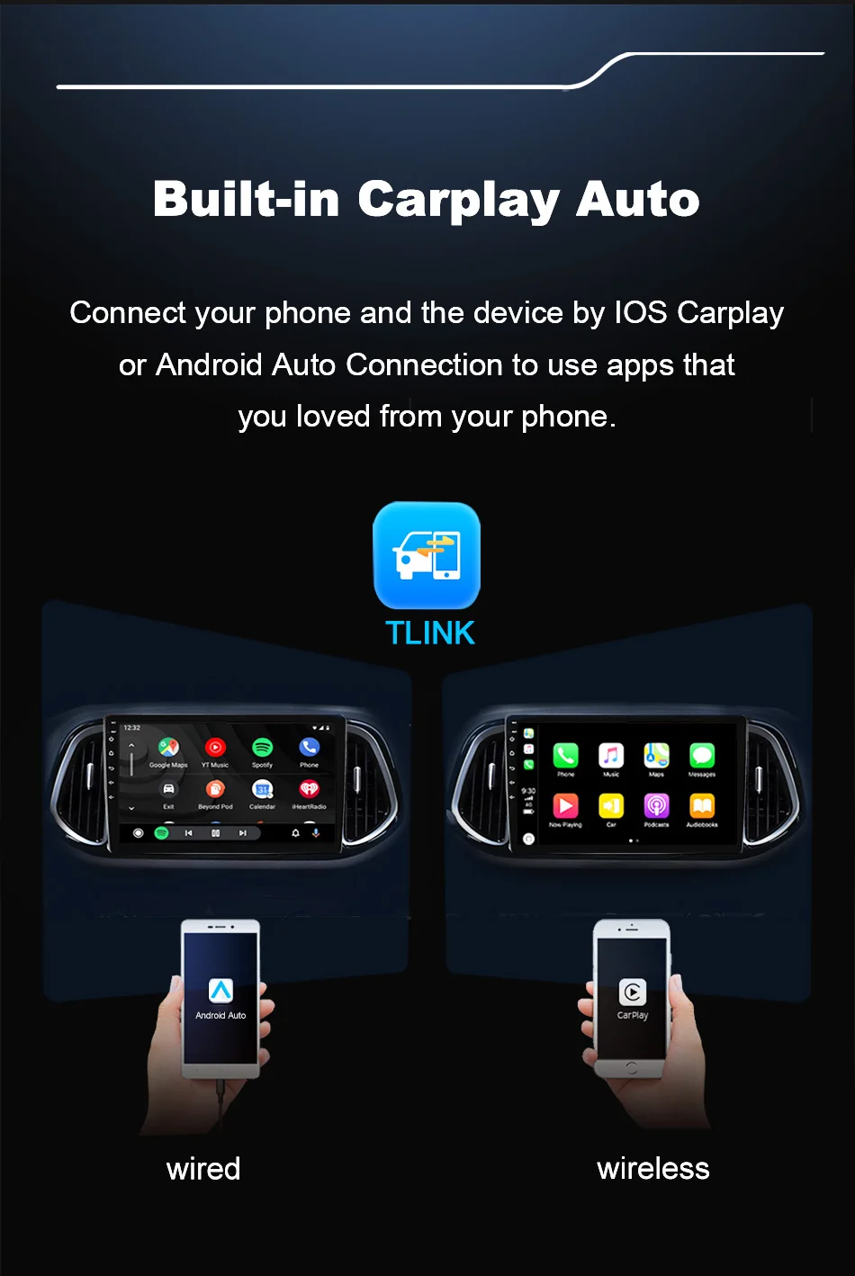 5. Встроенный Carplay, подключите телефон и устройство с помощью iOS Carplay или Android Auto