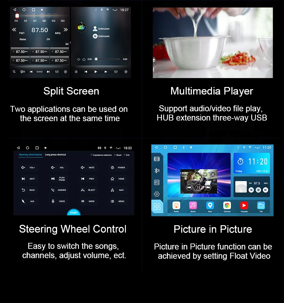 Features 3 Split Screen,Picture in Picture