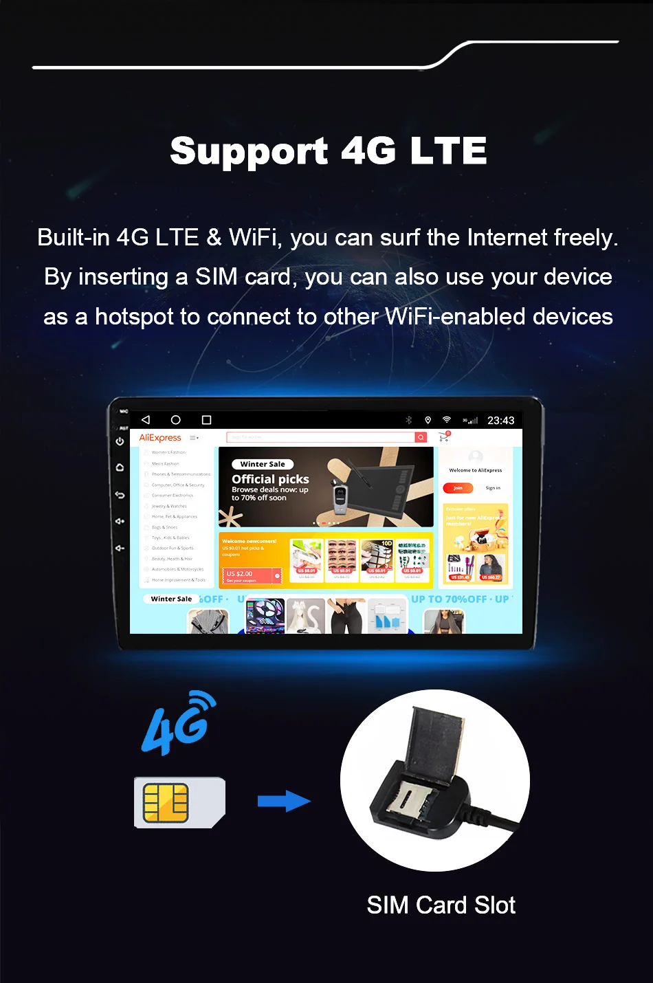 6. Встроенный 4G LTE и WiFi для интернет-серфинга
