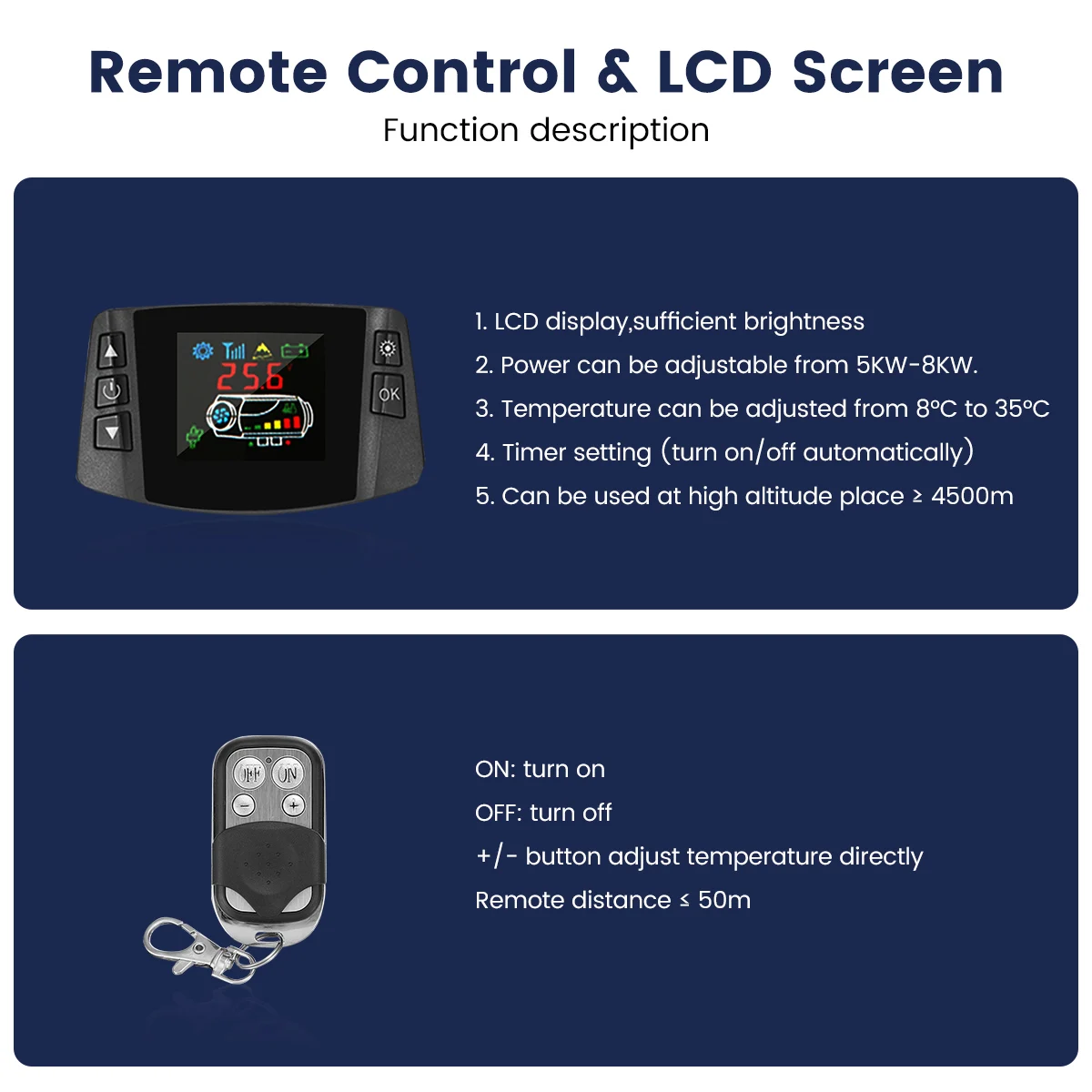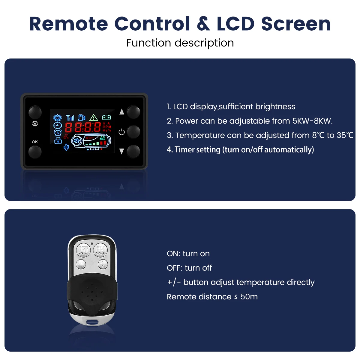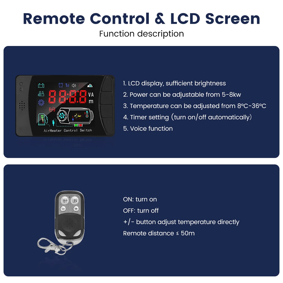 Универсальный блок 5-8 кВт 12 в автомобильный нагревательный инструмент Дизельный подогреватель воздуха с одним отверстием голосовой ЖК-монитор парковочный обогреватель для автомобиля грузовика автобуса лодки RV