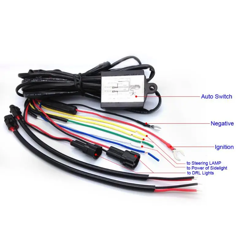 Этот комплект позволит вам подключить огни DRL так, чтобы при запуске автомобиля свет включался, а затем, когда вы Включите фары на DRL, будет затемняться!