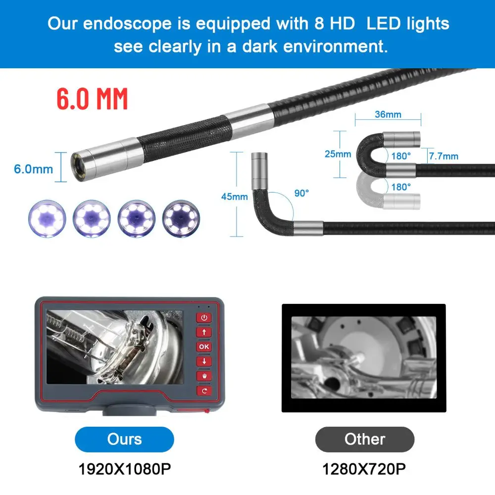 Автомобильный шарнирный Бороскоп, 5,0 дюйма, 6 мм, 8,5 мм