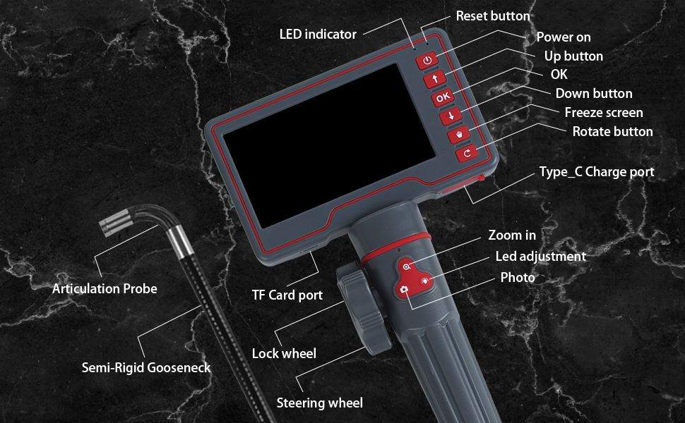 (1) Камера для осмотра бороскопа оснащена кабелем из полужесткого материала, выдерживает колебания и обеспечивает длительный срок службы. Камера эндоскопа может складываться в различные формы и может использоваться под водой для осмотра трубопроводов и других инспекционных ситуаций. Камера эндоскопа способна работать в нескольких средах.