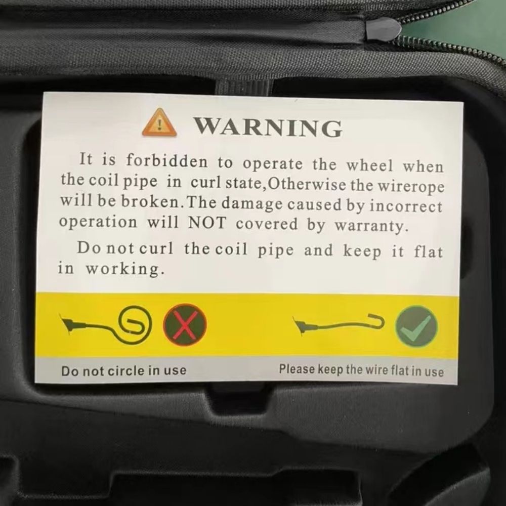 Когда трубка катушки находится в обжатом состоянии, запрещается Управлять колесом, иначе трос сломается. Ущерб, вызванный неправильной эксплуатацией, не покрывается гарантией, и ответственность за возникший ущерб несет покупатель.