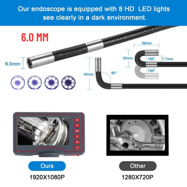 (2) Диаметр камеры: 6,0 мм 8,5 мм дополнительно (можно поворачивать на 180 градусов)