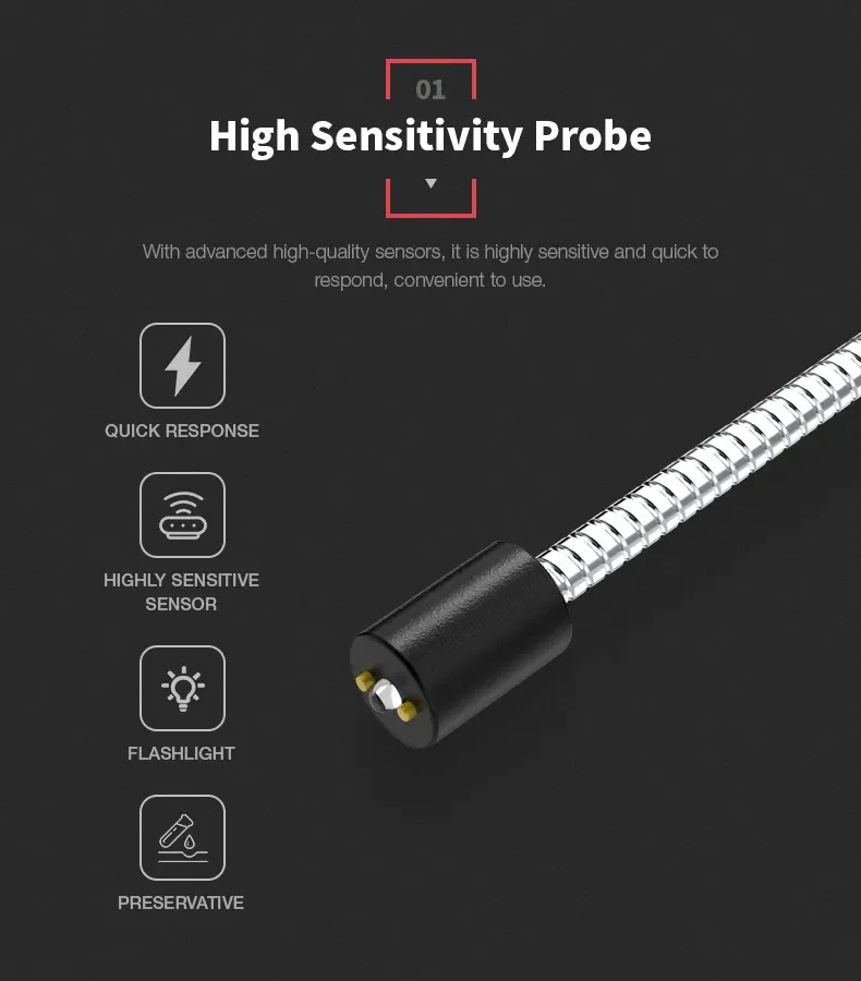 • Легко использовать :Тестер тормозного масла прост в использовании: Просто вставьте его в бачок тормозной жидкости и считайте результаты на светодиодном дисплее.