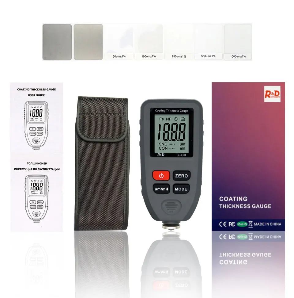 Автомобильный толщиномер R & D TC100, тестер краски автомобиля, измеритель толщины покрытия, руководство России, сверхточный 0,1 микрон/0-1300 Fe & NF