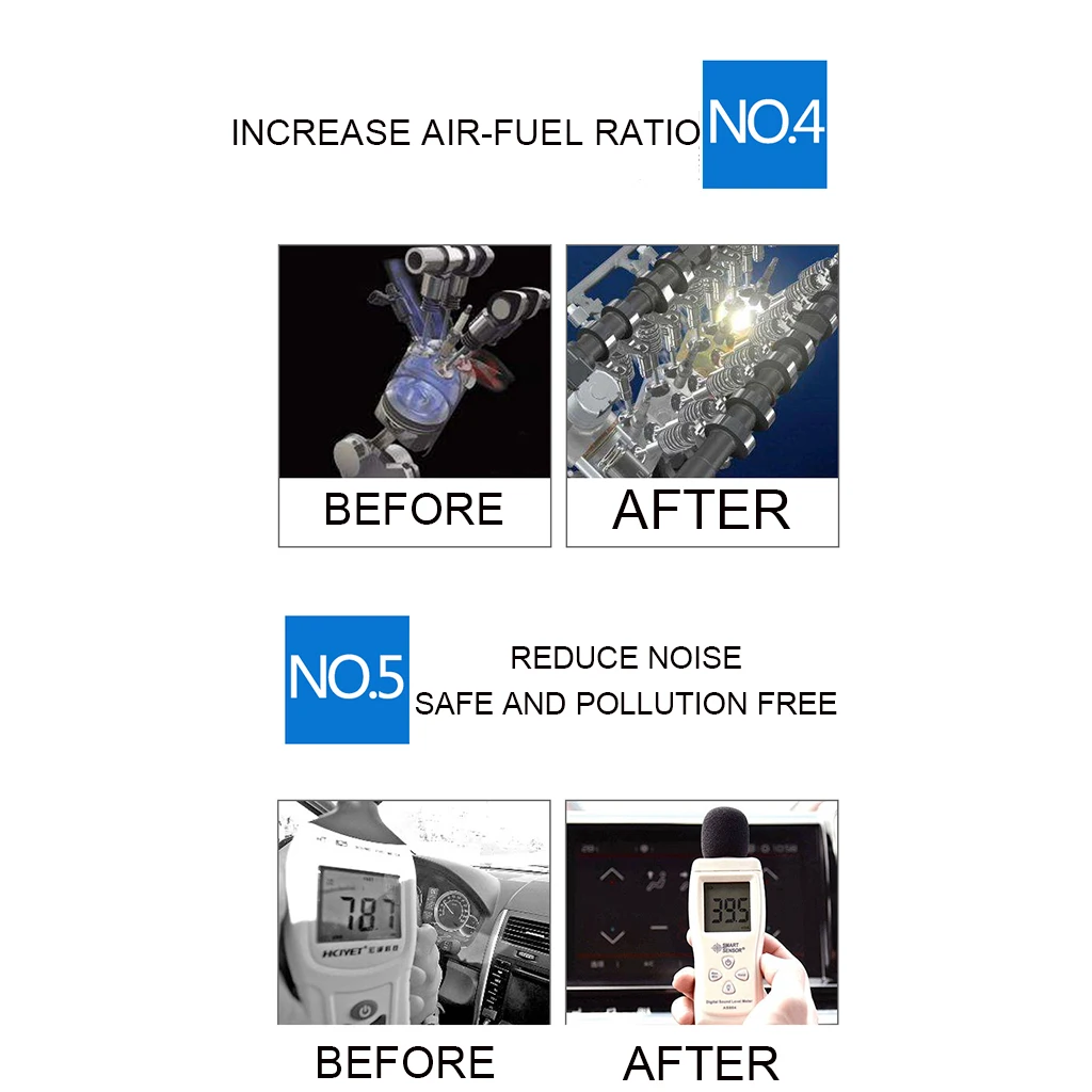 Значительно снизить уровень шума и сделать ходьбу более комфортной. Увеличьте срок службы автомобиля и двигателя, уменьшите проблемы с системой питания и Увеличьте интервалы технического обслуживания.