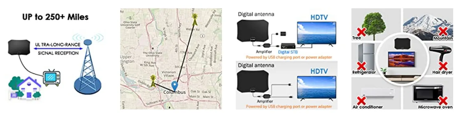 Получайте HD-контент до 1080p с местных радиовещательных вышек и станций без каких-либо ежемесячных подписок. Подключите эту антенну к антенному порту вашего телевизора.