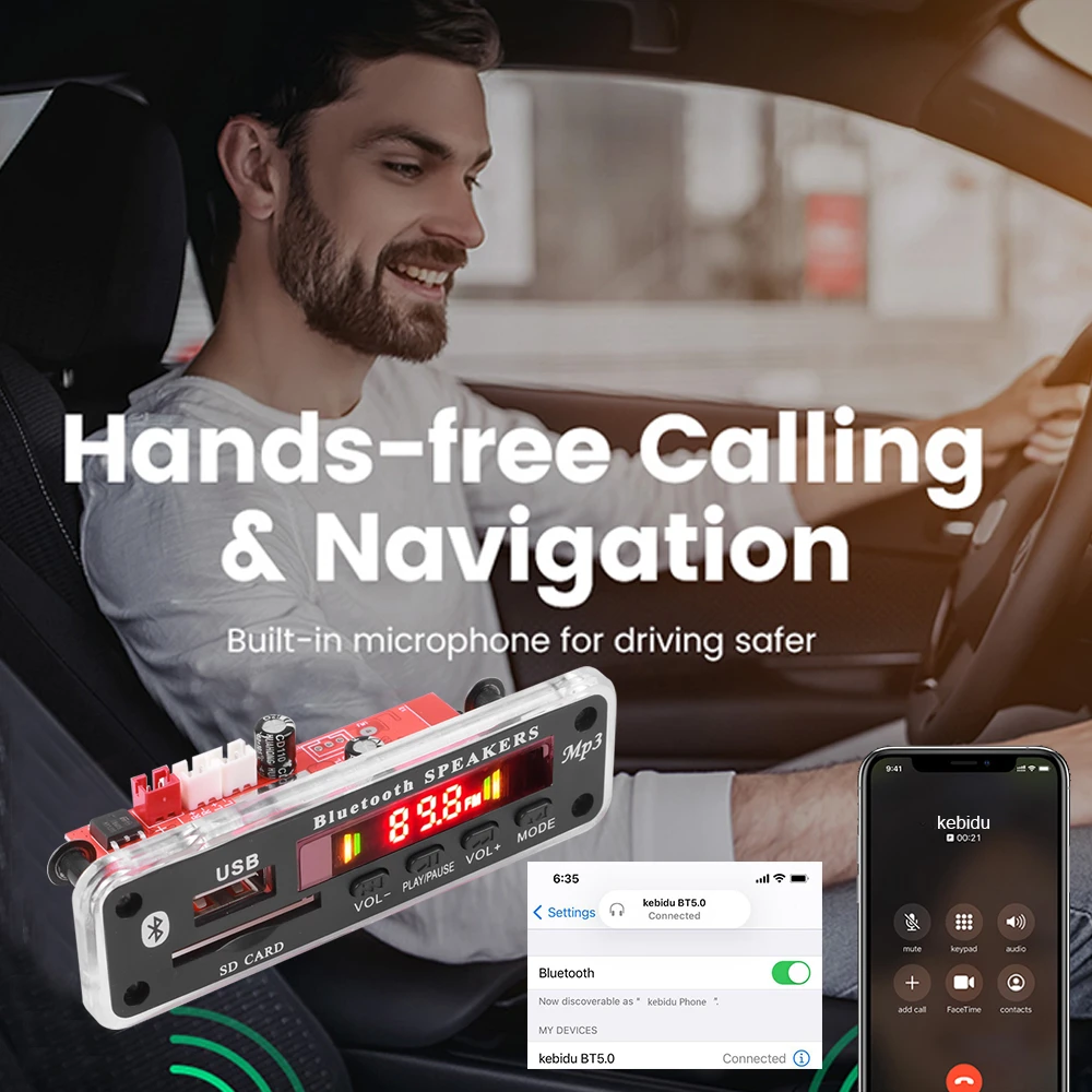 7. Может быть напрямую подключен к динамику, с усилителем мощности и функцией декодирования Bluetooth.