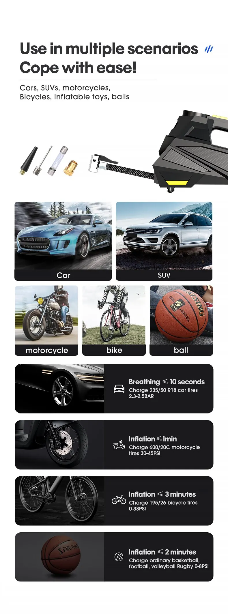 Автомобильный воздушный компрессор 12 В 150 фунтов на квадратный дюйм Электрический насос для накачивания шин мотоцикл велосипедный шар светодиодный свет проводной портативный автоматический воздушный насос