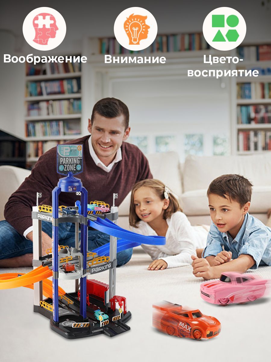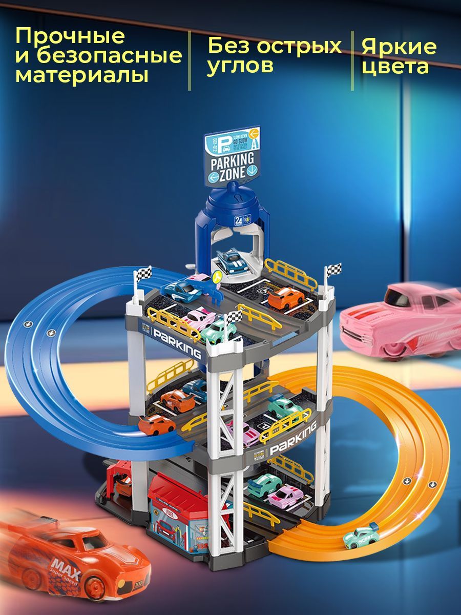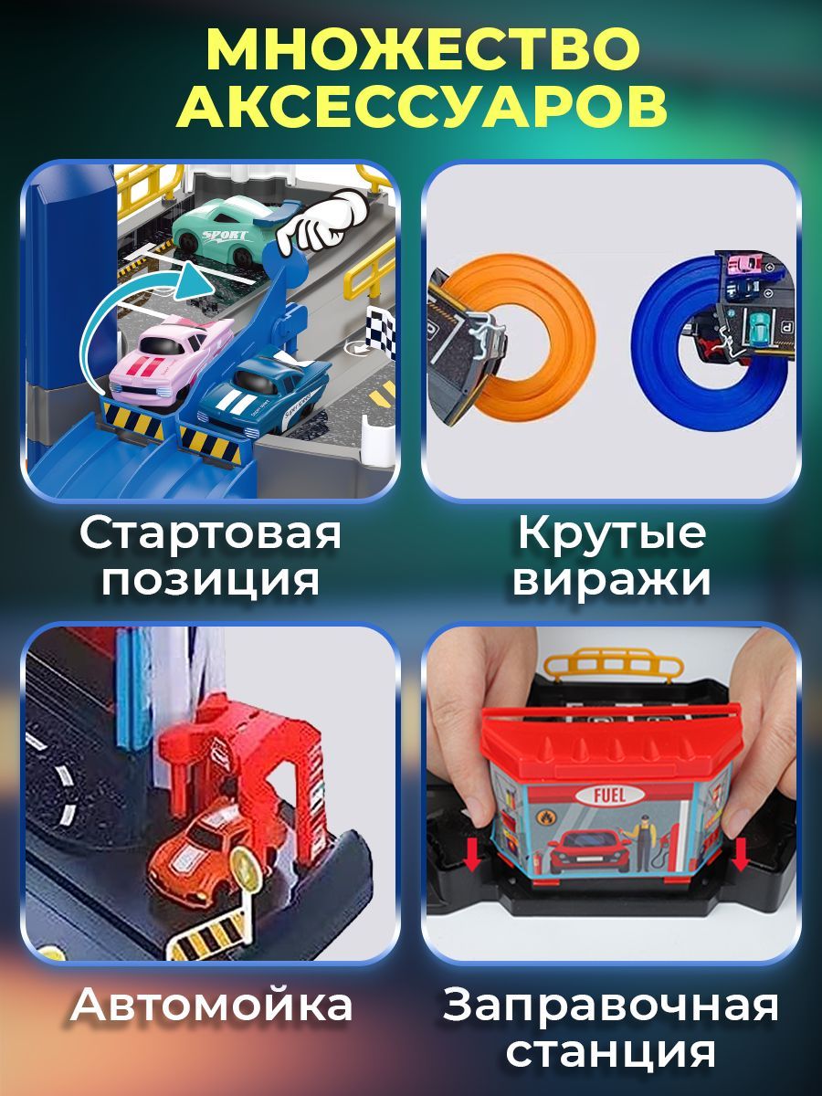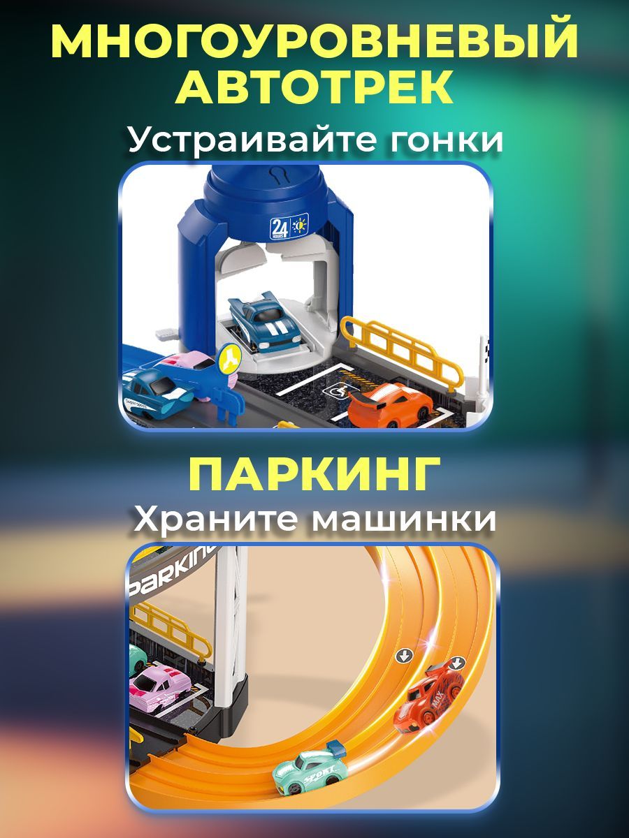 Автотрек и набор машинок малышу WiMi, парковка интерактивная, гараж для машинок, горка детская развивающая