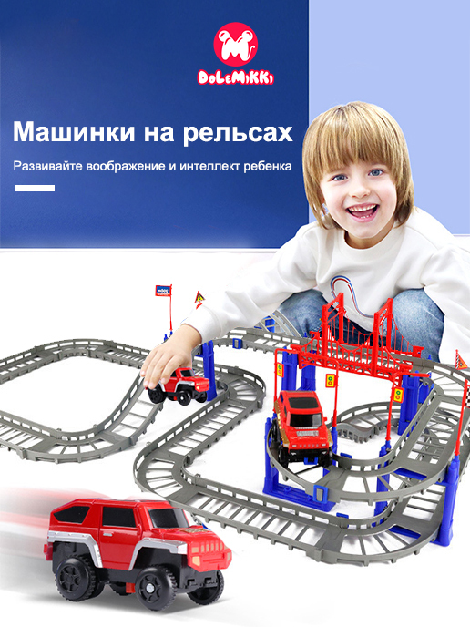 Автотрек игрушка с машинкой несколько уровней скоростной арт. WJ0014, DOLEMIKKI