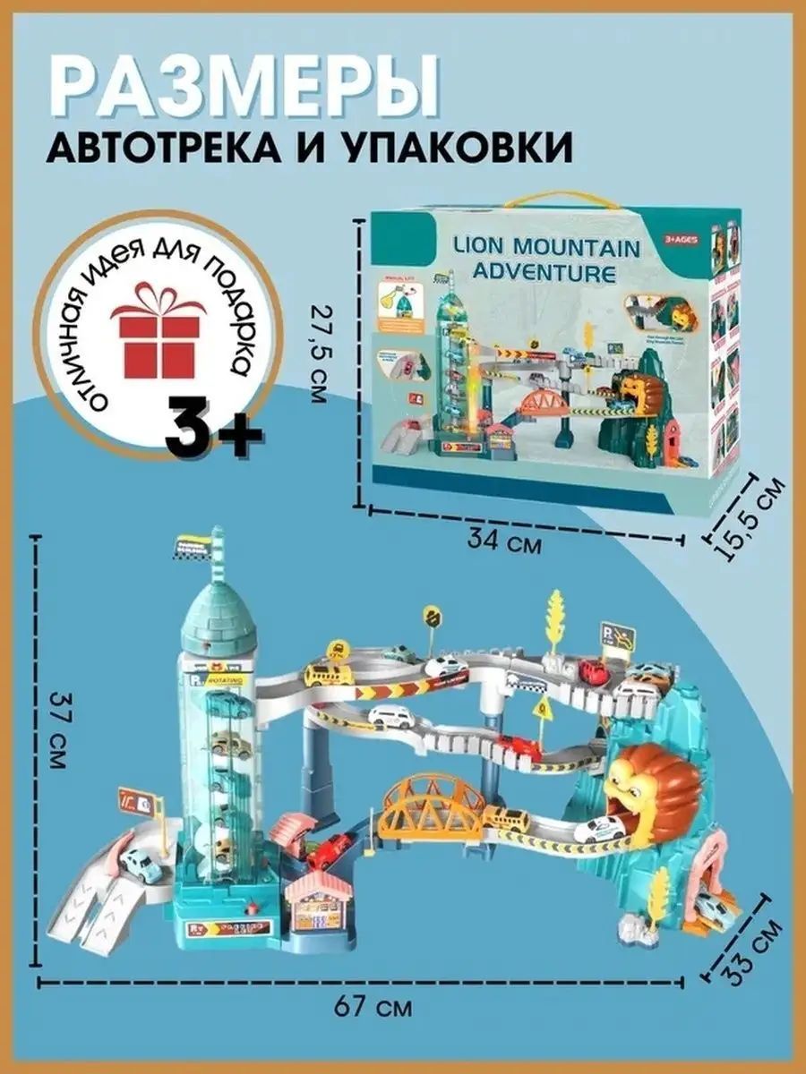 Автотрек парковка для машинок "Лев", детская игрушка для мальчиков