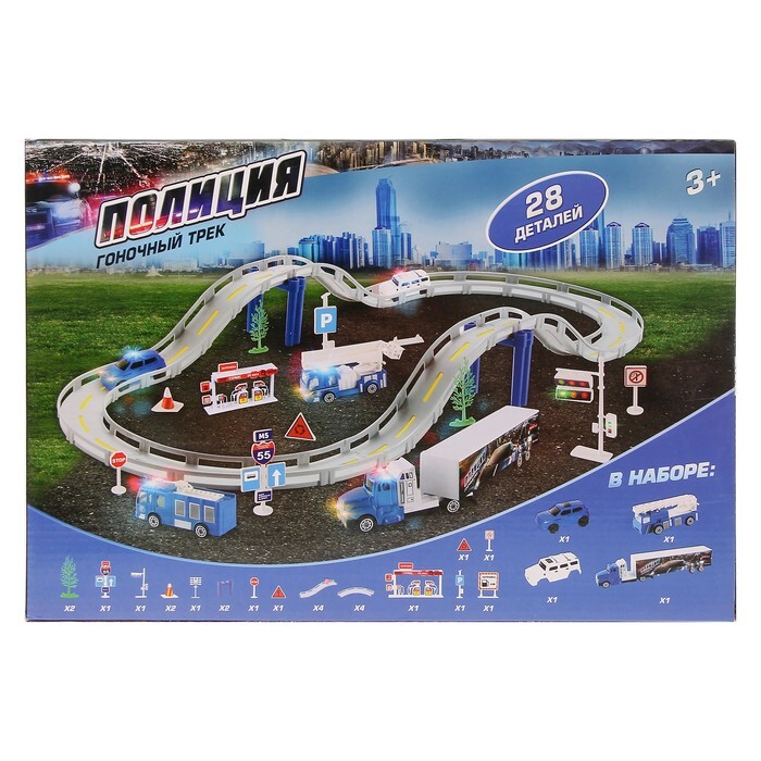 * Набор состоит из 28 деталей, кольцевая трасса собирается из 10 элементов.