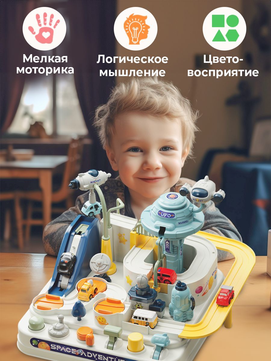 Автотрек с машиками детский WiMi, гараж для машинок интерактивный, парковка, развивающая мелкую моторику для малышей