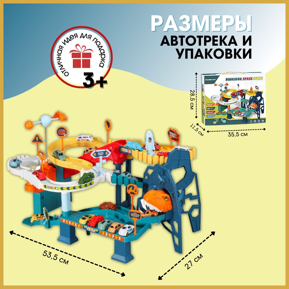 Автотрек с машинками "Диностанция", детская игрушка для мальчиков