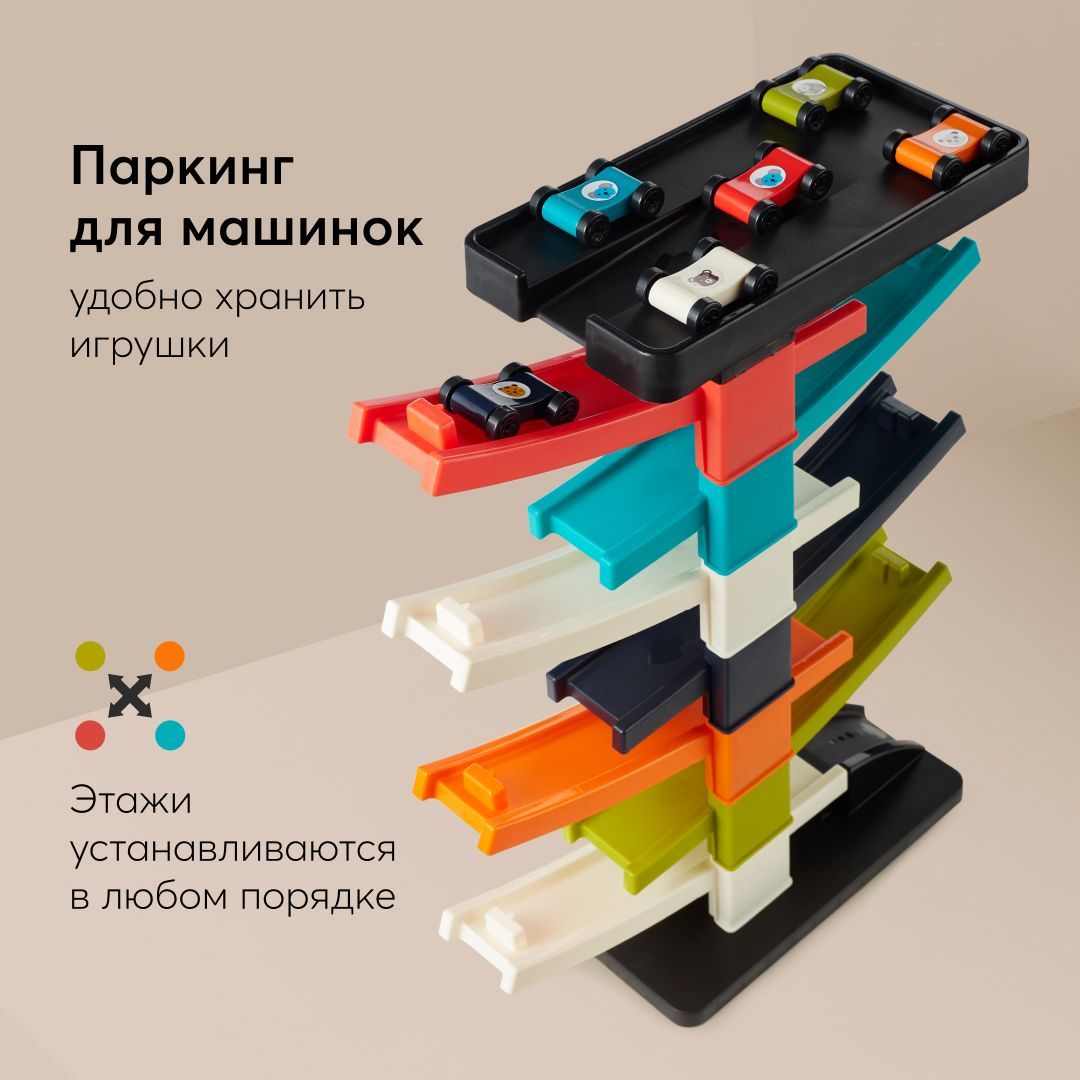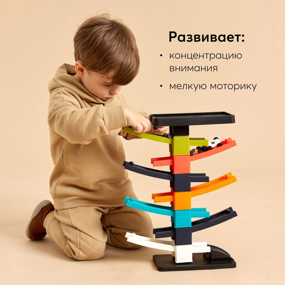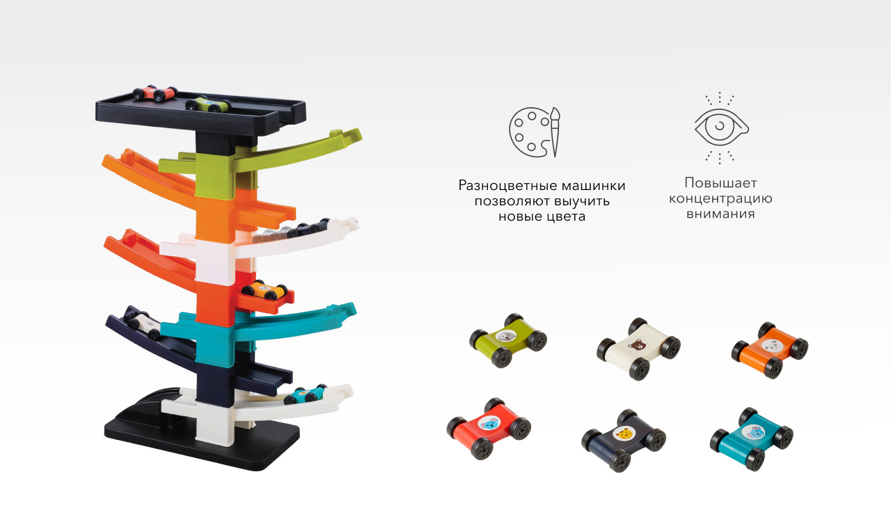 Описание: Наблюдать, как машинки ездят по FUNNY RAMP очень увлекательно. В комплекте 6 машинок – запускайте их на трек-балансир вместе или по отдельности. Наблюдение за движением развивает зрительное восприятие, познавательный интерес, повышает концентрацию внимания, зрительно-моторную координацию. Игра с маленькими машинками тренирует мелкую моторику. Разноцветная трасса позволяет выучить новые цвета. Наблюдение за многоуровневым треком разививает пространственное мышление.