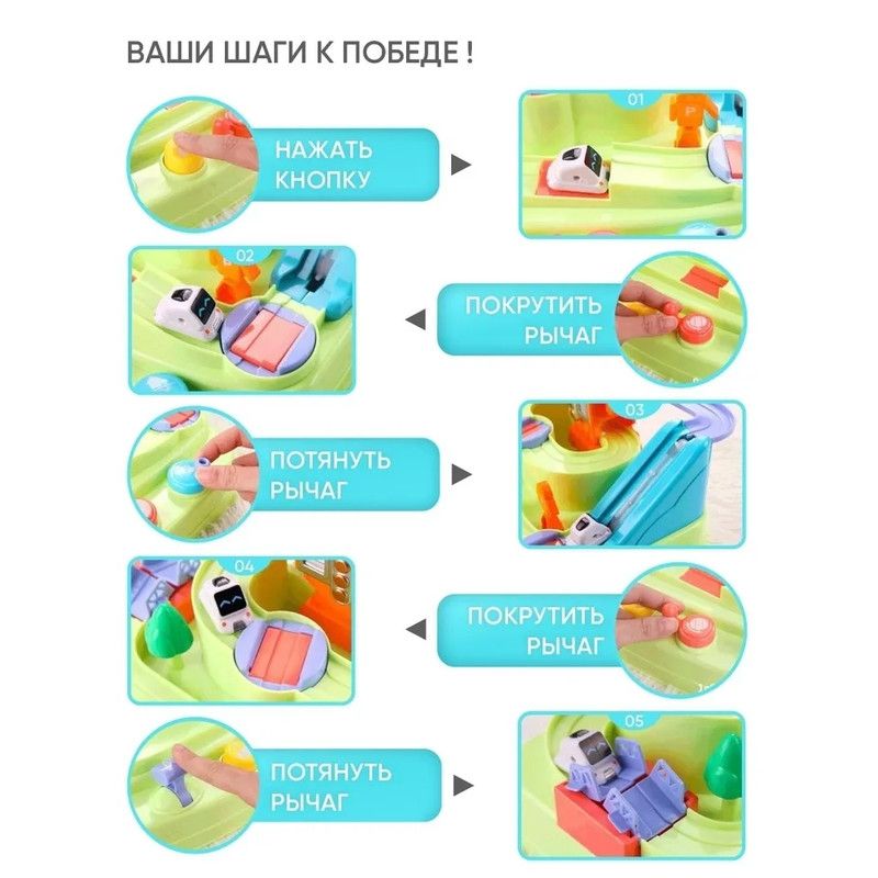 моторику, усидчивость и внимание. Разноцветные кнопкиЦвета кнопок и рычагов соответствуют цветам механических элементов на поле, которые они приводят в движение.