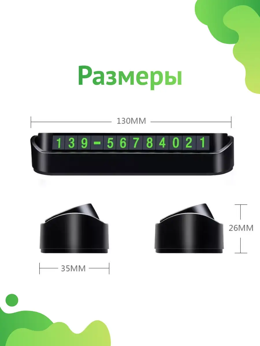 Описание: Парковочная автовизитка - очень полезный аксессуар для автолюбителей. Благодаря люминесцентному покрытию номер телефона владельца автомобиля всегда будет виден, даже в темное время суток. Данная парковочная визитка надежно крепится на торпедо машины при помощи клейкого покрытия, которое не испортит внешний вид салона автомобиля. При необходимости табло с номером телефона можно скрыть, закрыв табло с вашим телефонным номером. В комплект входит табличка из высококачественного пластика и цифр, из которых автовладелец самостоятельно набирает свой контактный номер телефона.