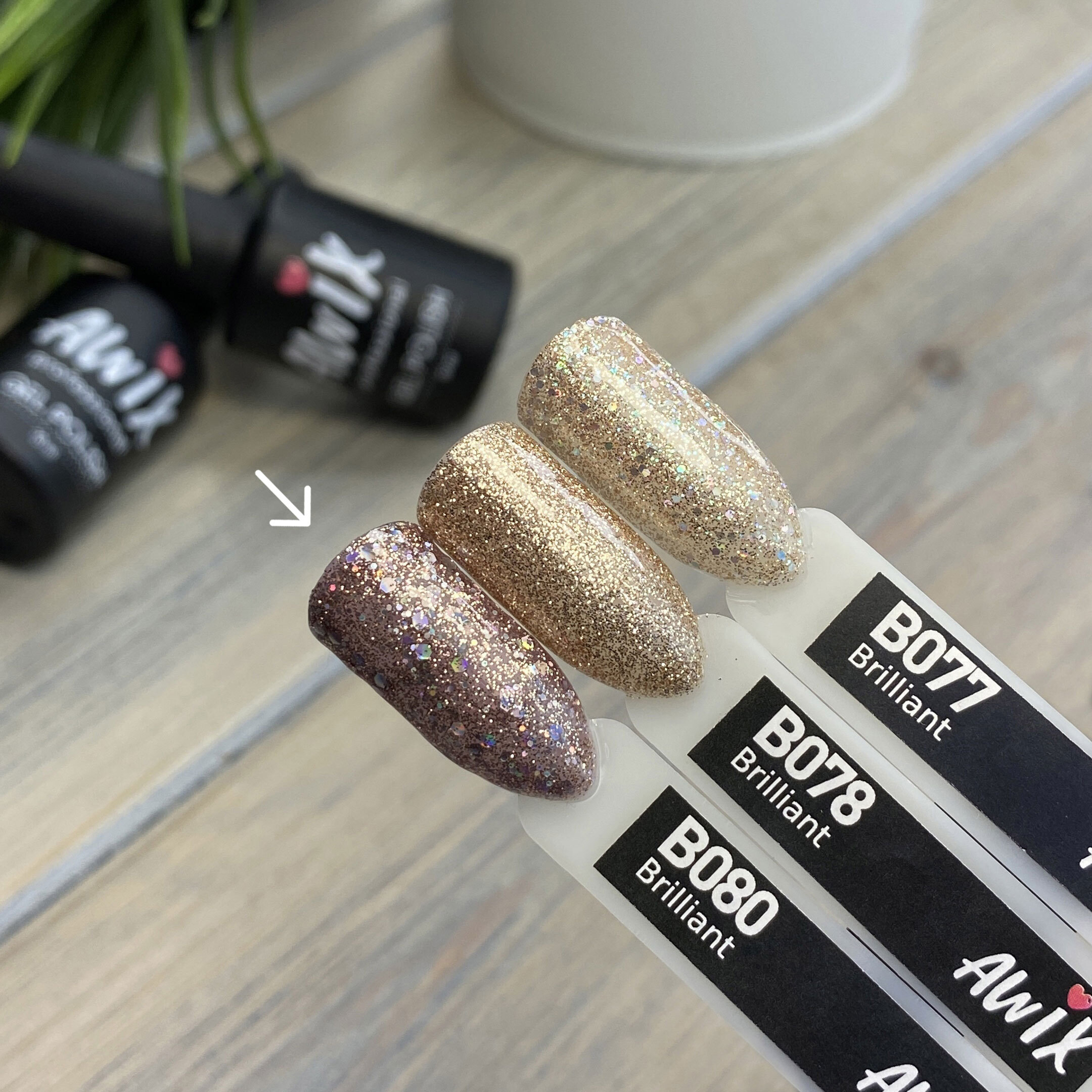 Awix, Гель лак Brilliant №80, 10 мл бронзовый с мелким шиммером, разноцветными блестками, серебряным глиттером, шестигранниками