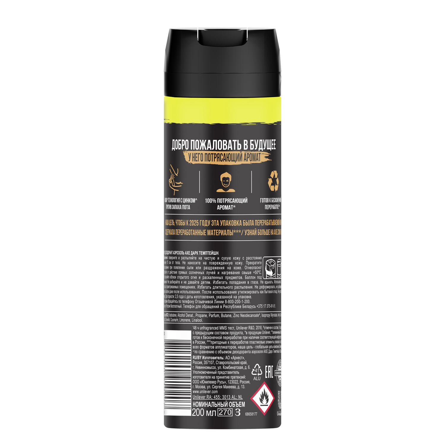 Описание: AXE дезодорант-аэрозоль DARK TEMPTATION – это надежная защита от запаха пота, уверенность в себе, ощущение свежести и комфорта в течение всего дня и наслаждение чувственным волнующим ароматом. Новая технология 2в1. Будь свежим, привлекай ароматом. Композиция была создана модным парфюмерным домом при участии мастера Энн Готлиб и очаровывает утонченным сочетанием сладких нот белого, молочного и горького шоколада. Дезодорант AXE поможет произвести впечатление на девушку и удивит своей стойкостью, оставаясь на коже на протяжении долгого времени. Дезодорант-аэрозоль АХЕ с антибактериальной формулой воздействует на причину появления неприятного запаха. Он препятствует размножению бактерий и позволяет коже свободно дышать. Продукт изготовлен с заботой об окружающей среде - в его составе нет озоноразрушающих веществ. Дезодорант DARK TEMPTATION создан для мужчин, которые ценят свое время и стремятся всегда выглядеть безупречно. Пользоваться им невероятно просто. Чтобы нанести спрей на кожу, нужно лишь повернуть крышку в нижней части и нажать на кнопку. Дезодорант мужской моментально высыхает и не оставляет следов на светлой и темной ткани – вы можете быть уверены, что рубашка или футболка останется свежей и идеально чистой даже в зоне подмышек. АХЕ – лидирующий бренд по производству мужской косметики в России и в мире. Его ценят за модные эксклюзивные ароматы, стойкое ощущение свежести и удобные форматы продукции. Вы можете выбрать удобный вам формат: классический аэрозоль или компактный карандаш.