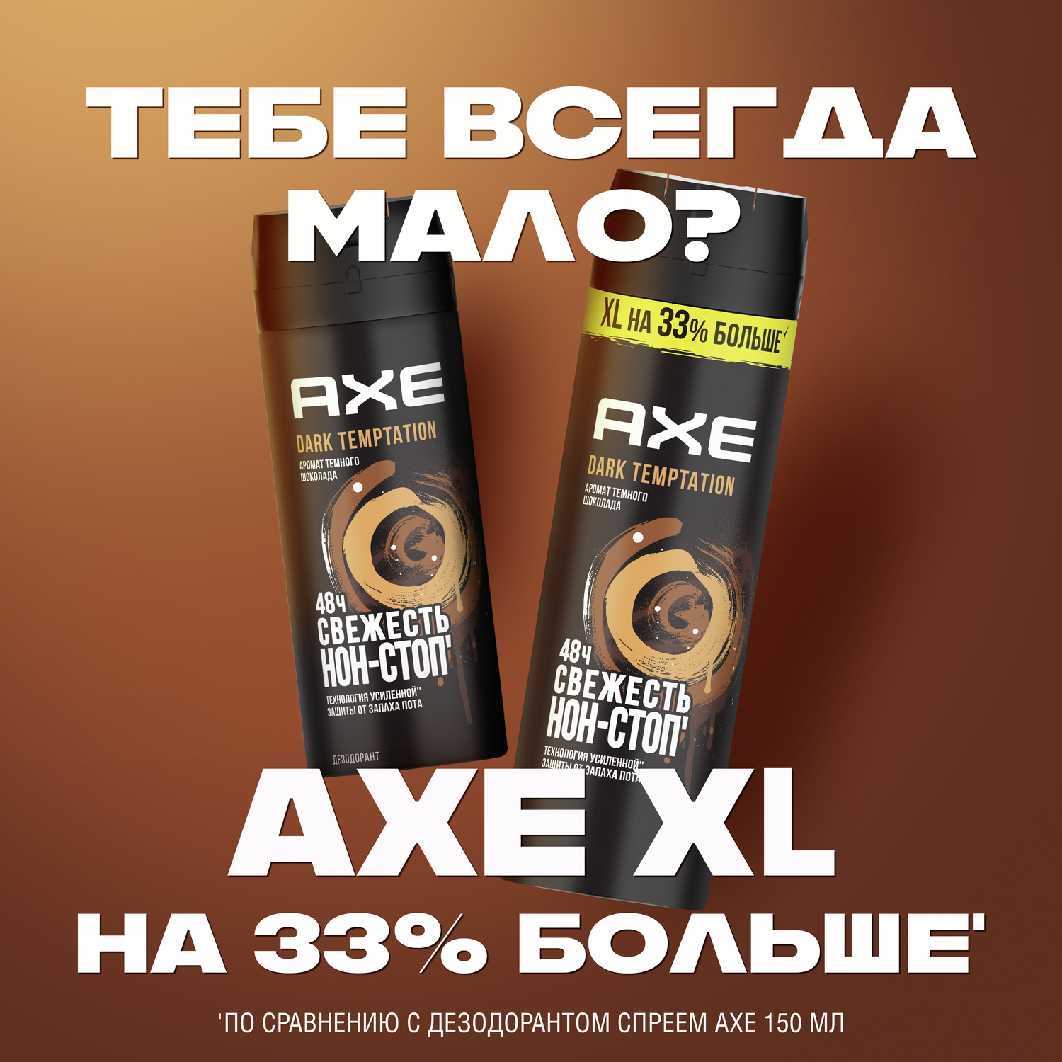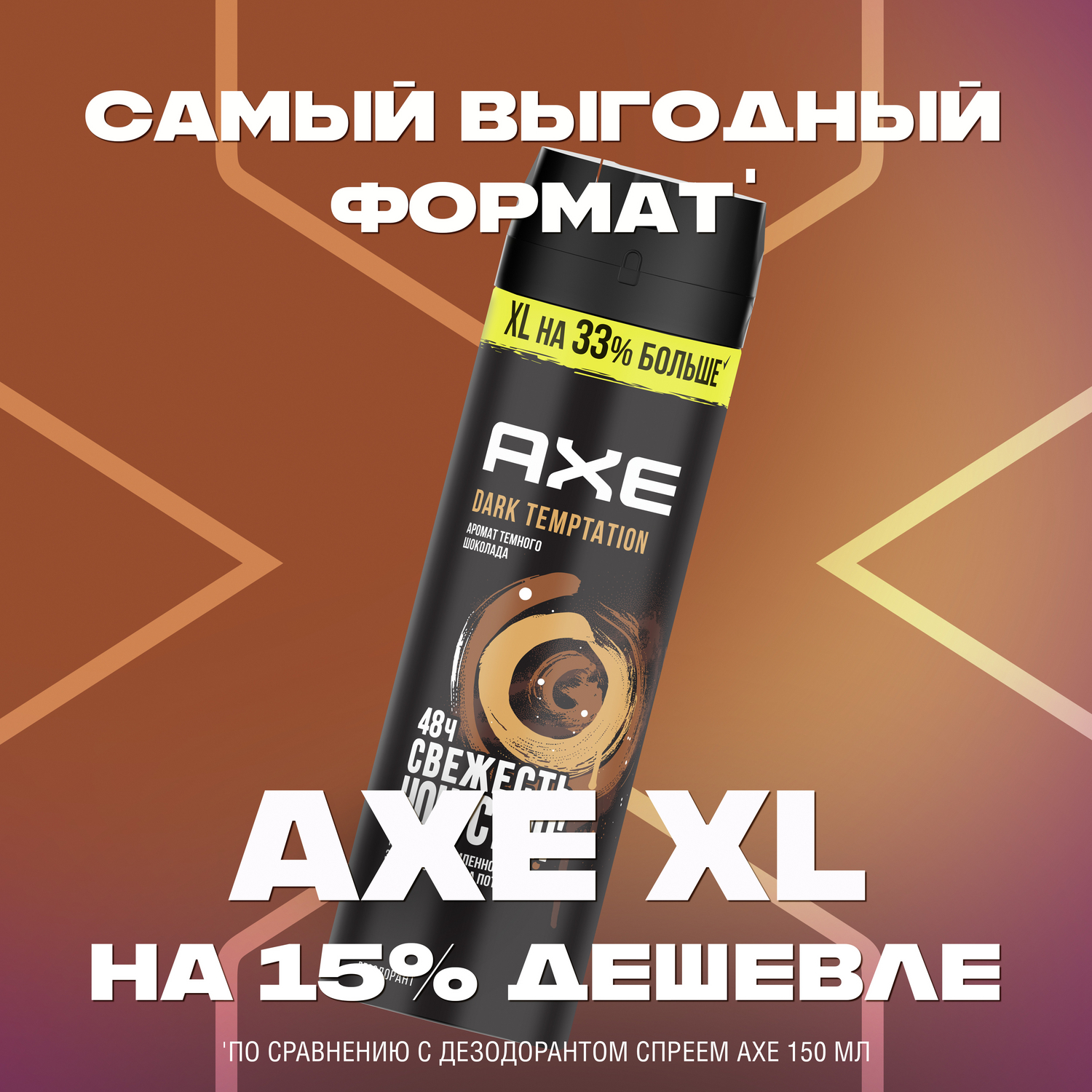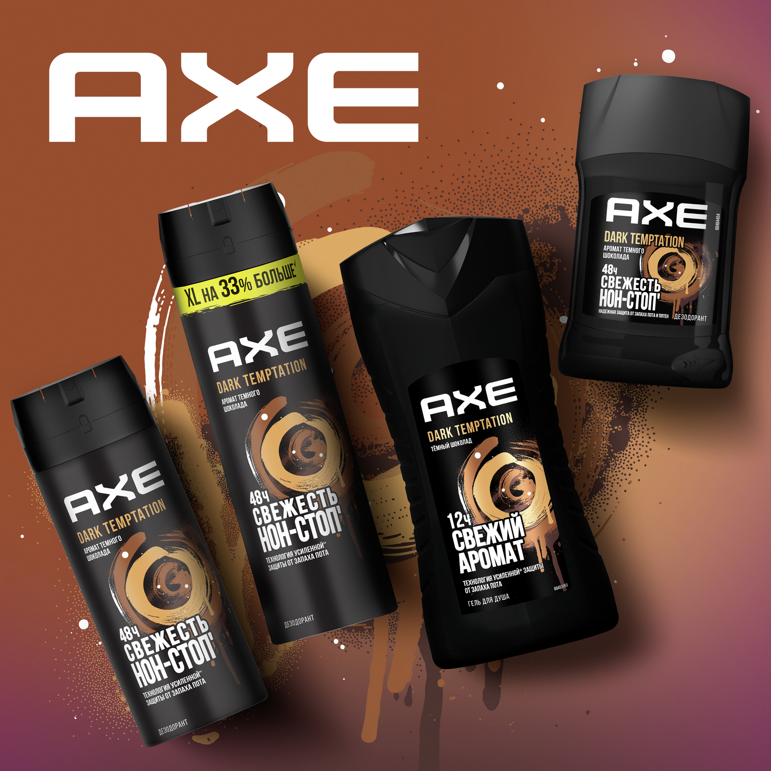 AXE мужской дезодорант спрей Dark Temptation Тёмный шоколад, XL на 33% больше, 48 часов защиты 200 мл