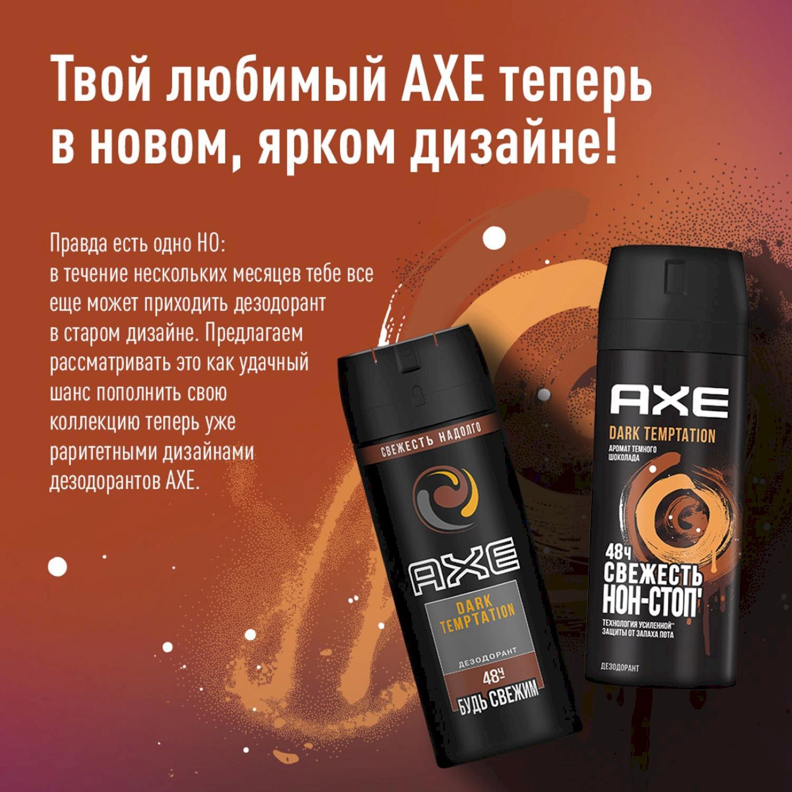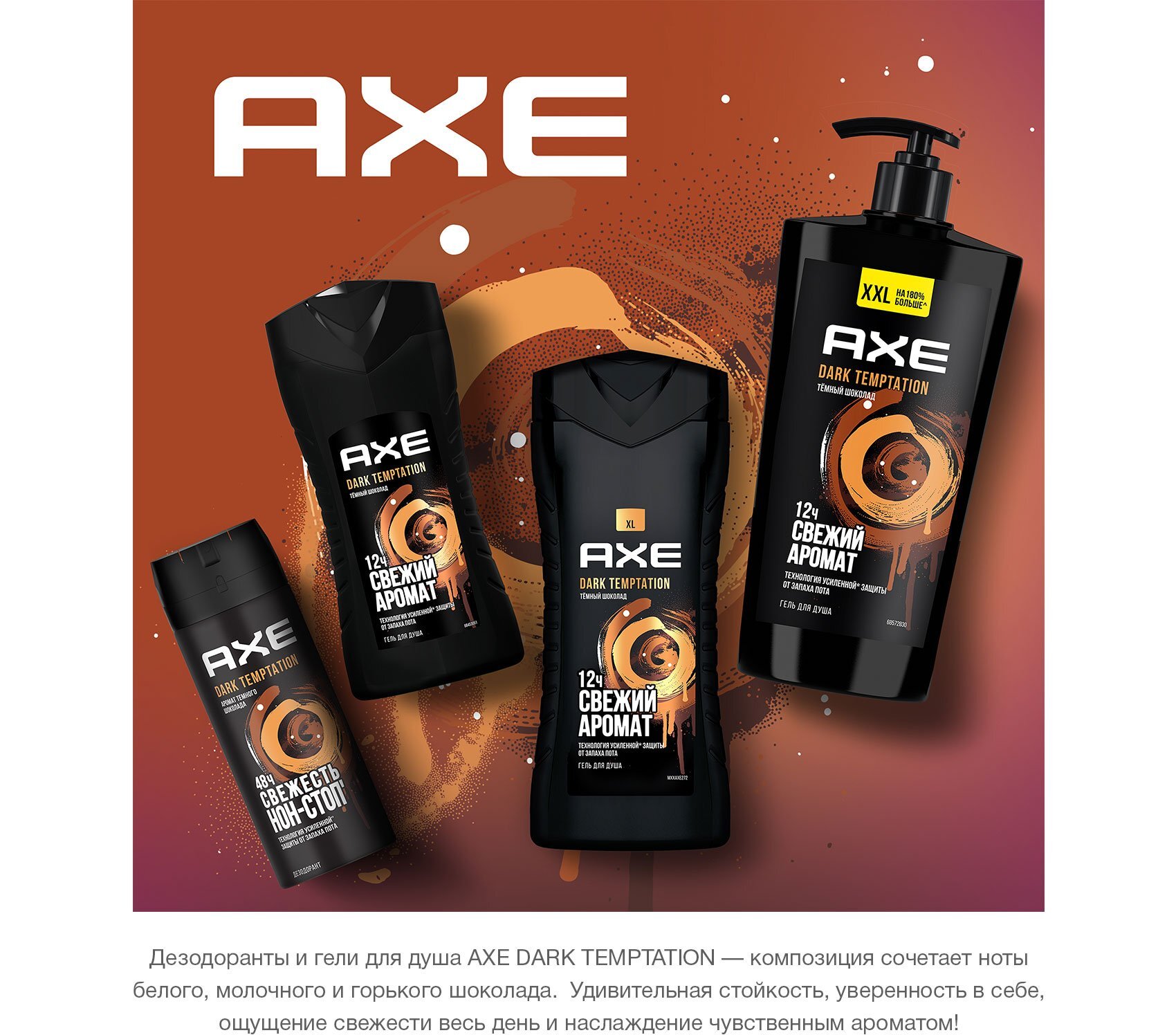 AXE мужской дезодорант спрей DARK TEMPTATION, Тёмный шоколад, защита 48 часов 150 мл
